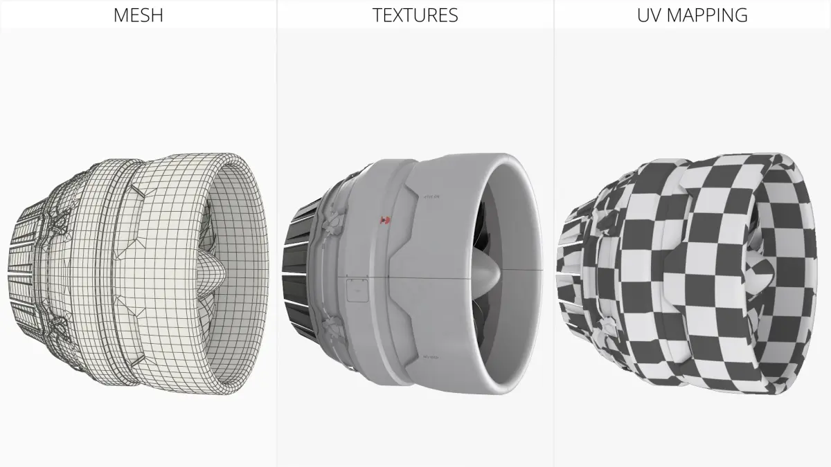 For space vehicle visualizations, futuristic aircraft concepts, engineering simulations, cinematic set design, video game asset creation, VR and AR experiences, and conceptual art projects requiring high-detail propulsion systems.