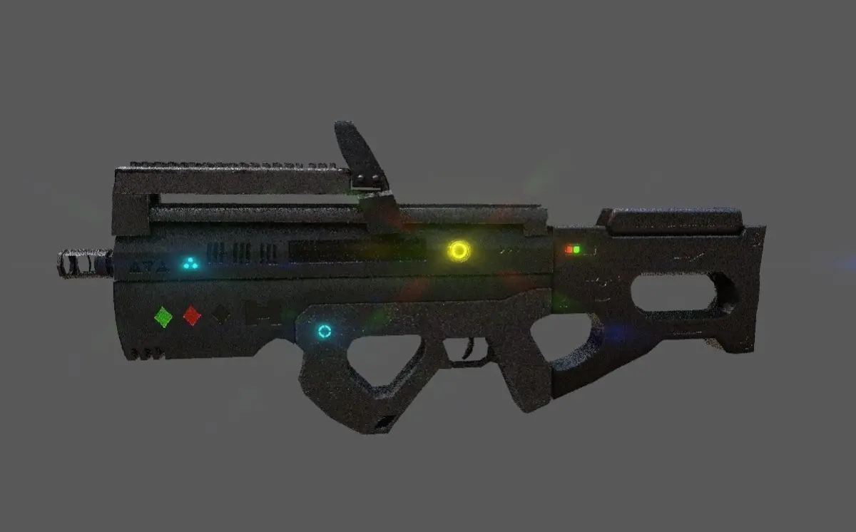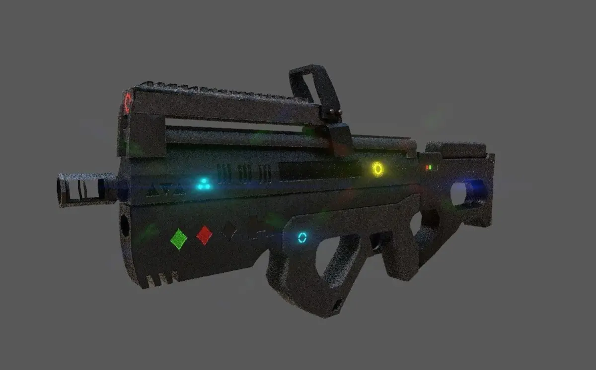 Scifi Gun game ready asset modelled on autodesk maya, texture on substance painter