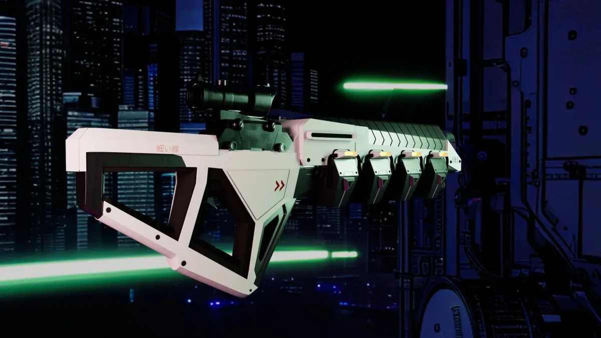 3D model of a sci fi railgun from a concept by Sperasoft.Hi poly version as seen in the texture renders.Low poly version as seen in the wireframe renders.