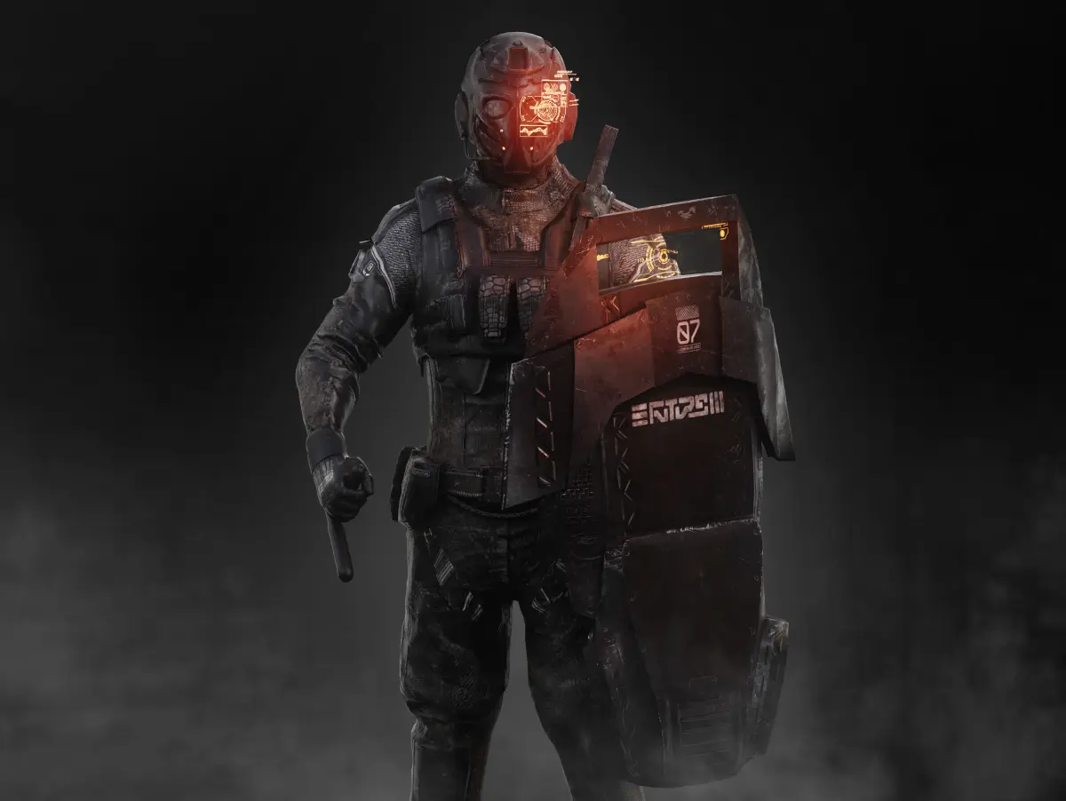 Detailed low poly 3D character Sci Fi Riot Soldier