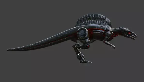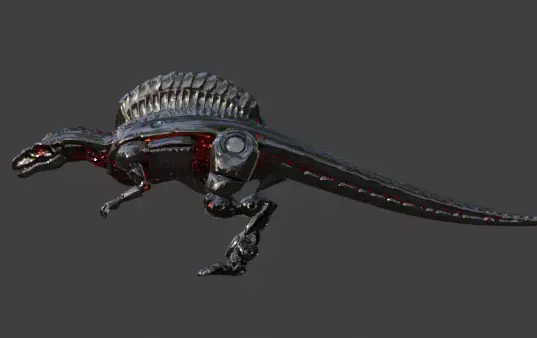 Tagssci-fi, robot, dinosaur, mecha, armored, mechanical, predator, red glow, power, spinosaurus, industrial, steel, 3d model, high-tech, monster