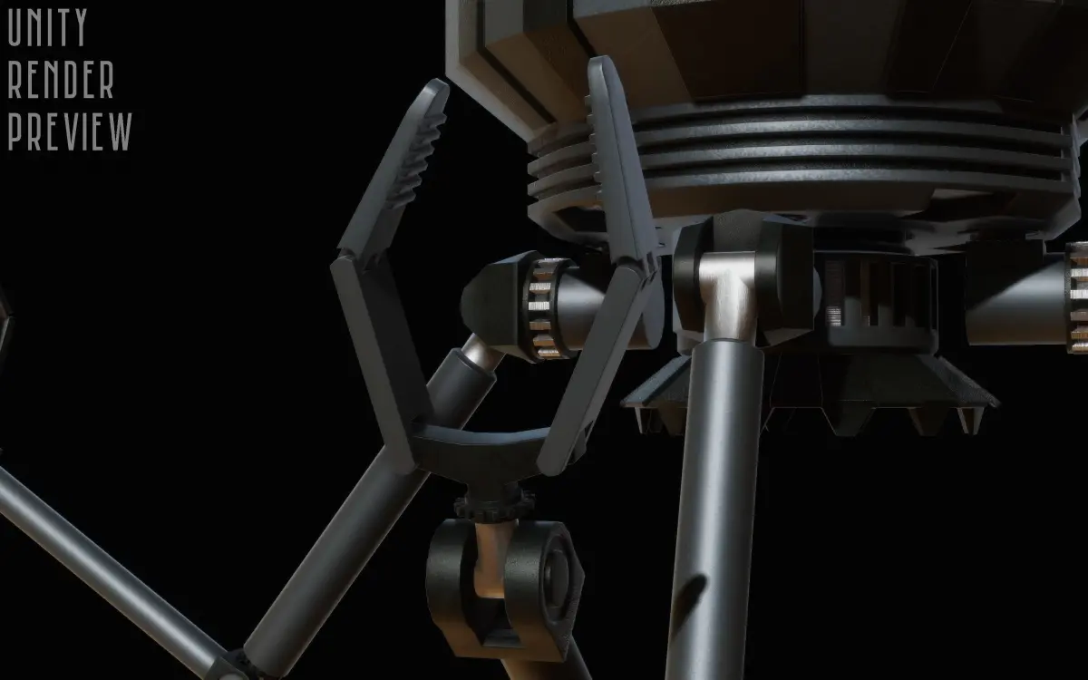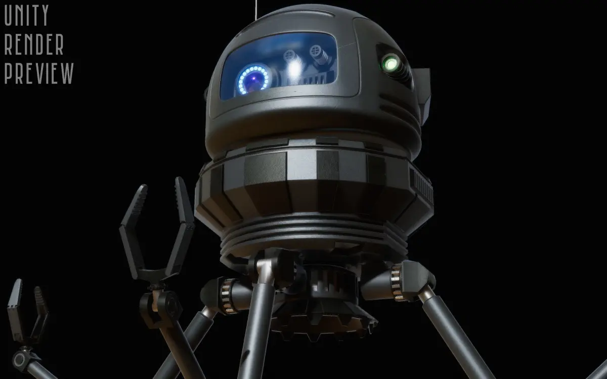 The entire robot if fully rigged with bones so it can be used in animation in Unity or any other engine that uses FK rigs. The bones are in arms (rotation gears and bending joints), the back camera and the front camera.
