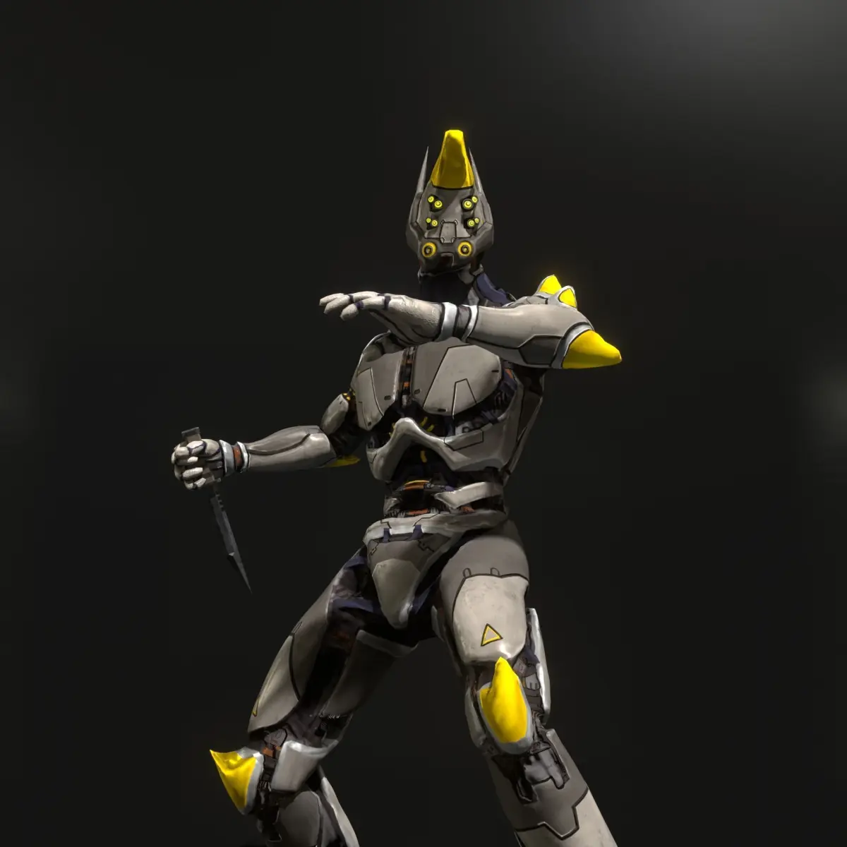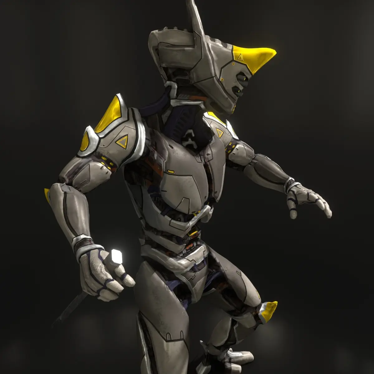 Low-poly game-ready model of futuristic sci-fi robot.