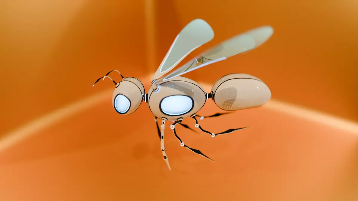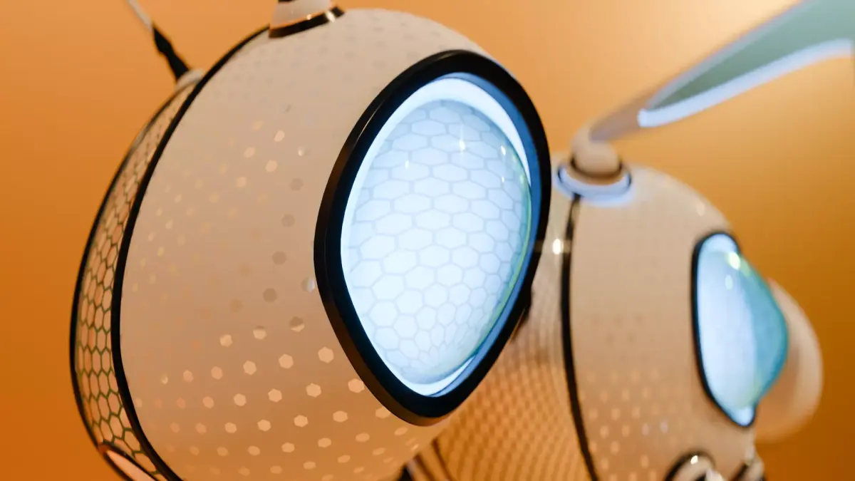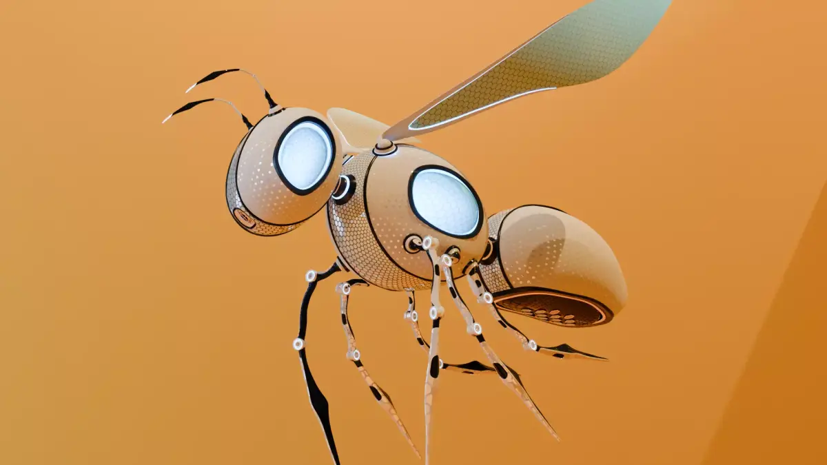 High-quality robotic bee created in Blender, featuring a sleek sci-fi design and a smooth seamless looped animation.