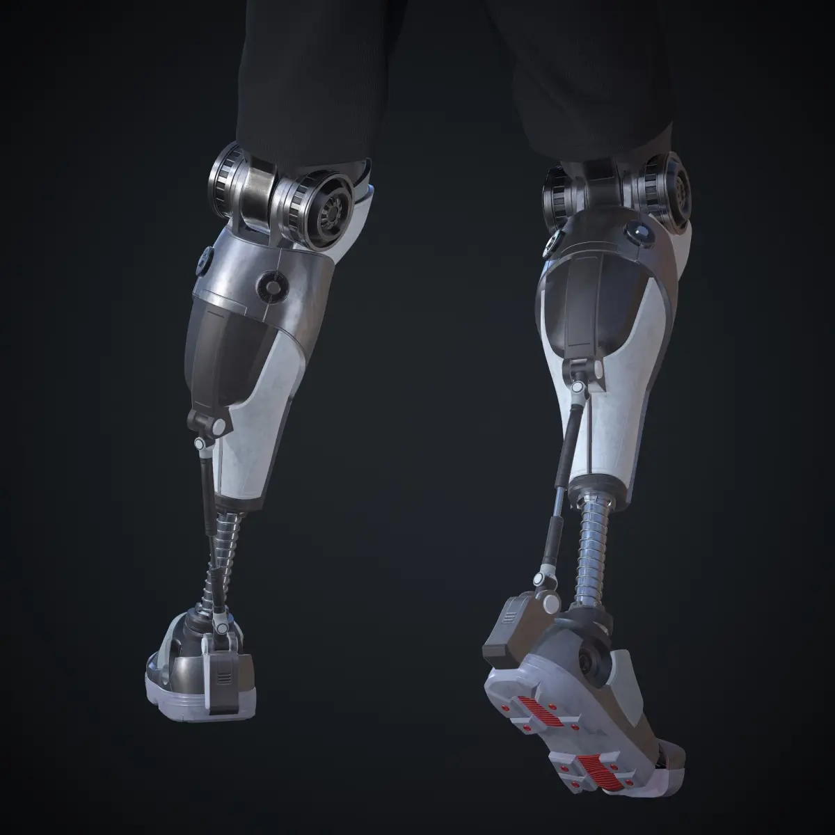Mid-poly 3d model of robotic prosthesis leg.