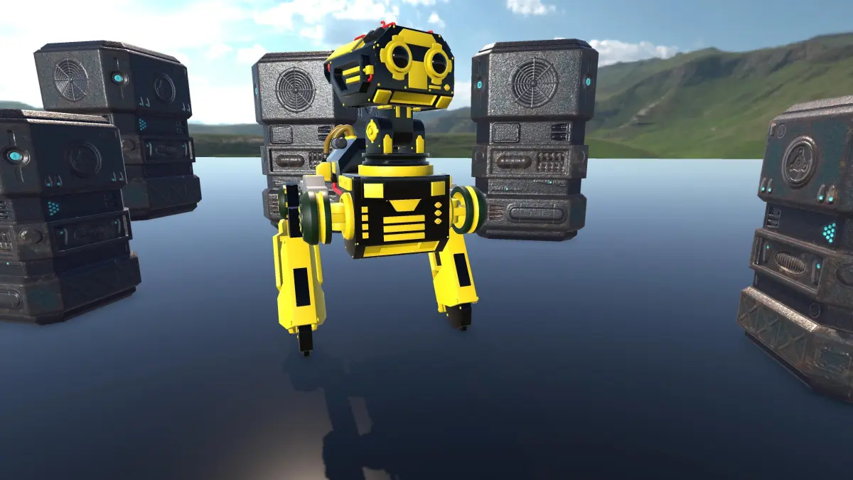 UnityPackage (prefabs and materials)This sci-fi asset pack includes multiple game-ready models, ideal for futuristic or cyberpunk game environments. The robots are rigged for animation, and all assets come with clean topology and non-overlapping UVs. Each model is optimized for performance in Unity and other real-time engines. All textures are PBR-ready and organized by material type.