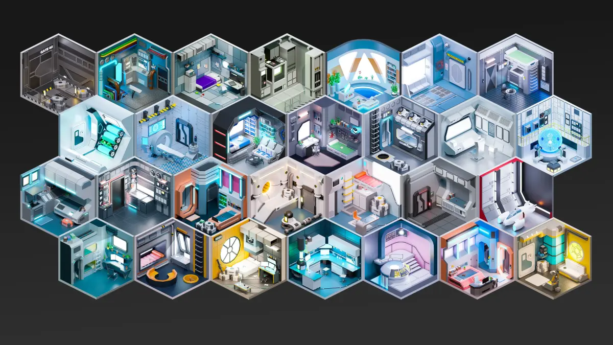 Space Station - https://www.cgtrader.com/3d-models/exterior/sci-fi-exterior/tile-pack-city-3d-low-poly-10-space-station