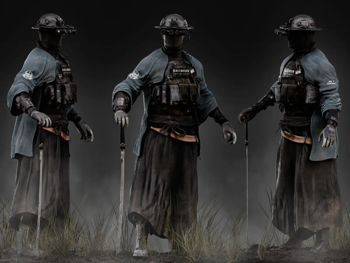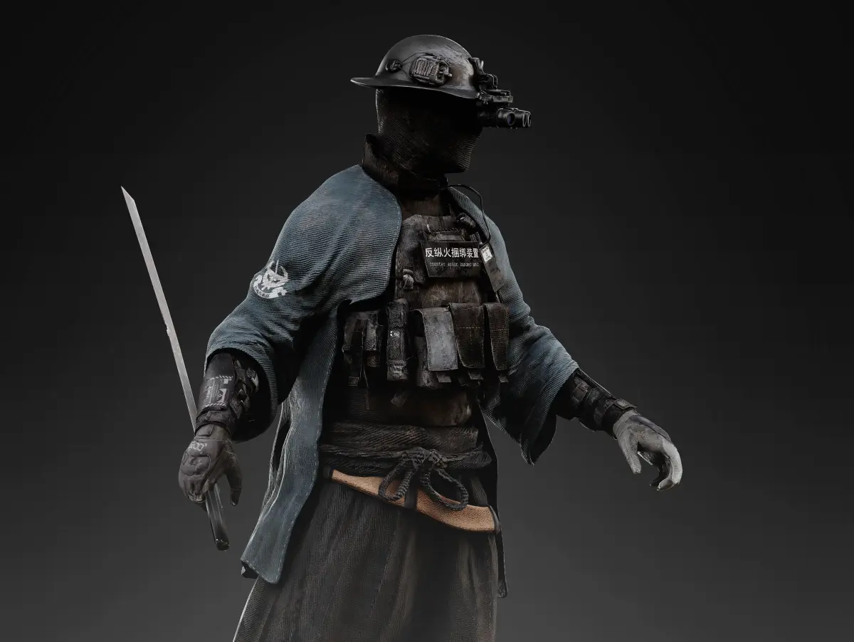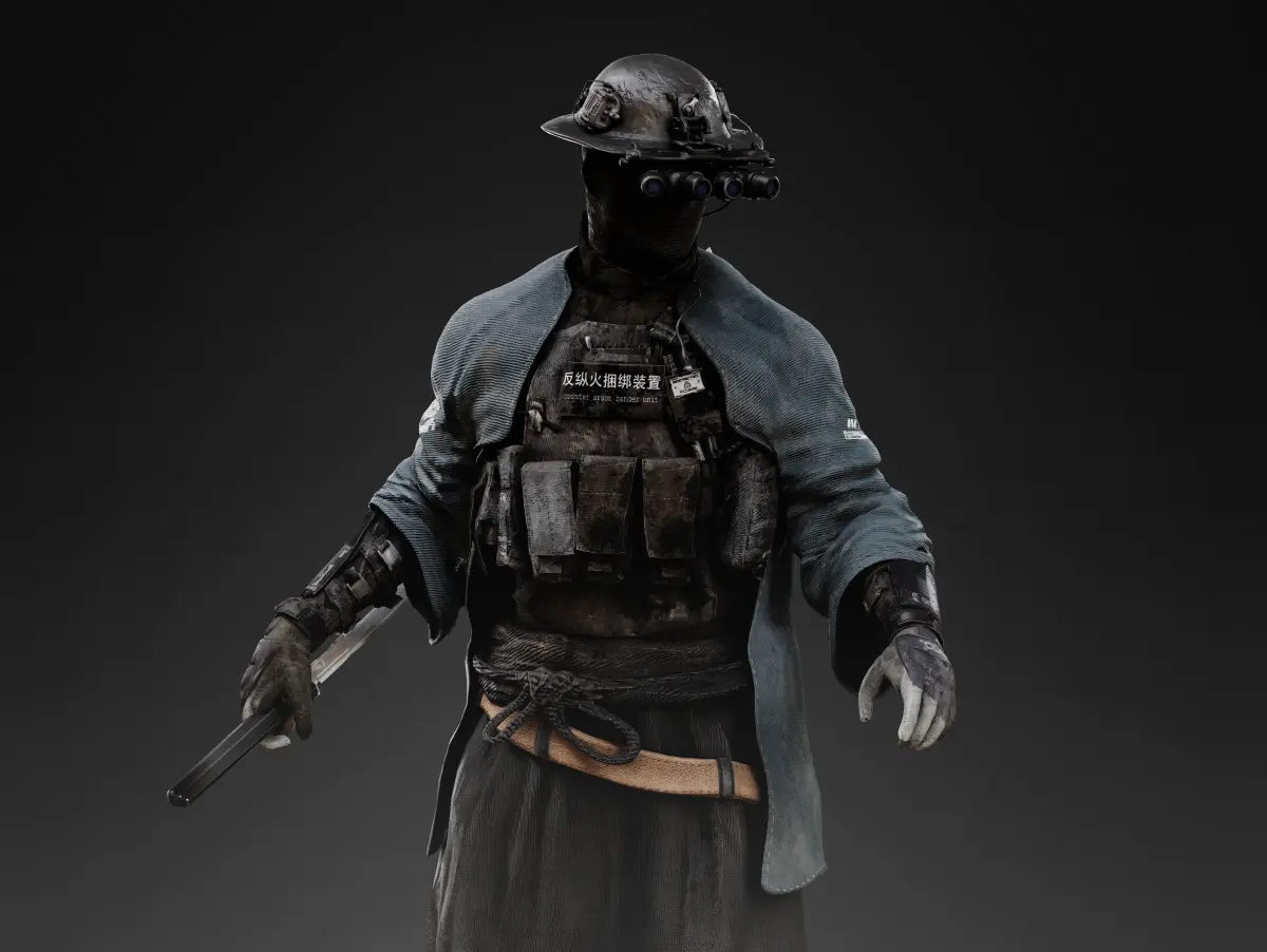 Detailed low poly 3D character Sci Fi Cyberpunk Samurai