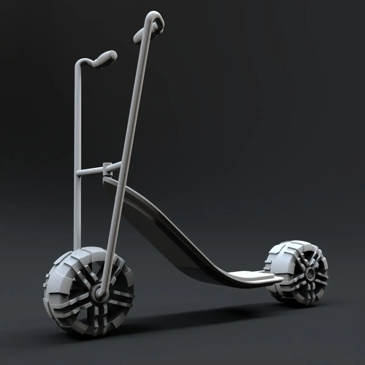 All parts are single material and have a plain color assigned similar to those seen in the preview renders. For the preview renders, standard materials and lighting from the Keyshot library were applied. The dimiensions are more or less those of a real life scooter. The last two previews show how the model looks like on 3ds max and SolidWorks viewports.