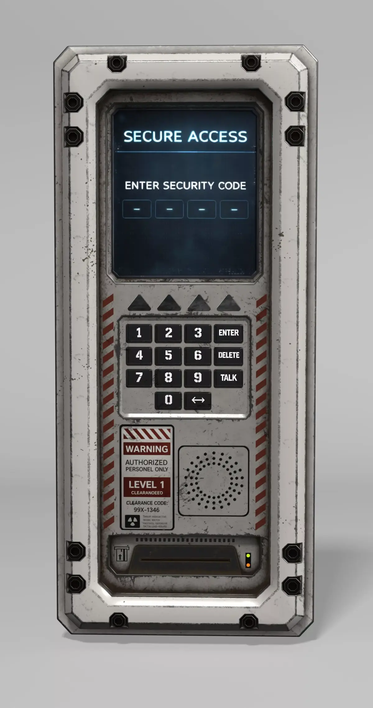 A highly detailed sci-fi security access panel designed for versatile use across games, cinematic scenes, and futuristic environments. Perfect for space stations, laboratories, military bases, buildings, or cyberpunk settings.