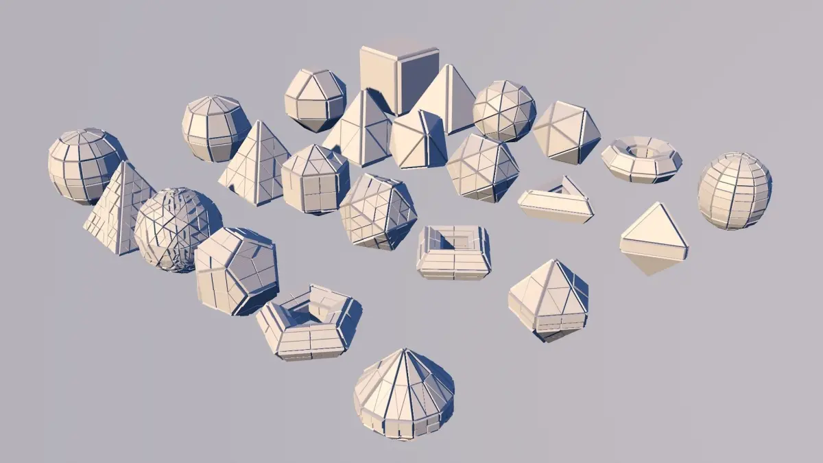 Sci Fi Object 24 Pieces - Square Pyramid Cone Sphere Torus 2019 Low Poly FBX OBJ Cinema 4D