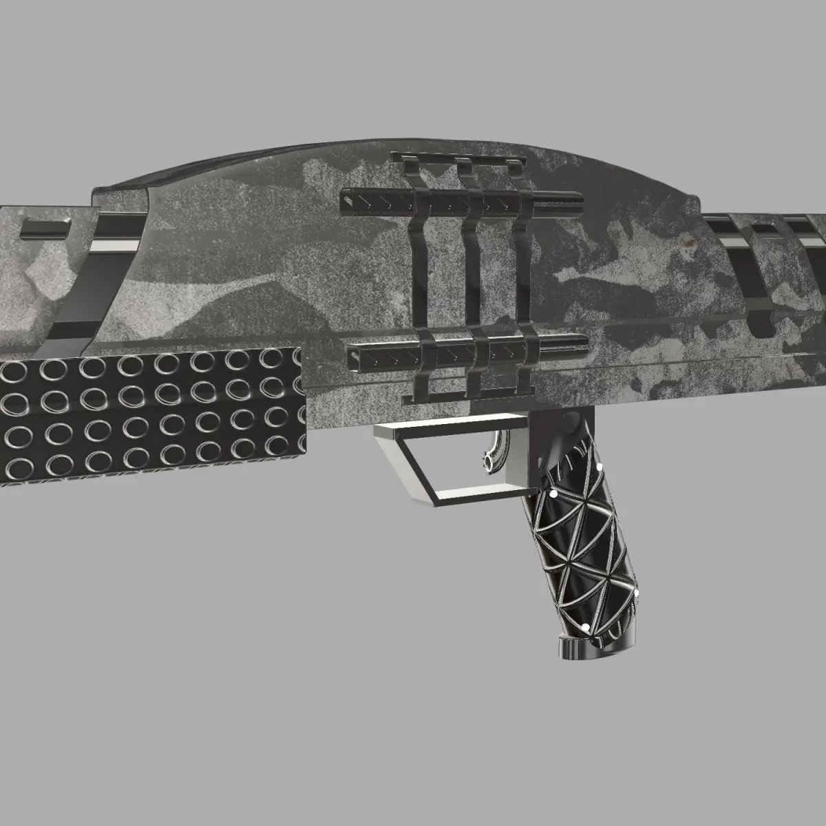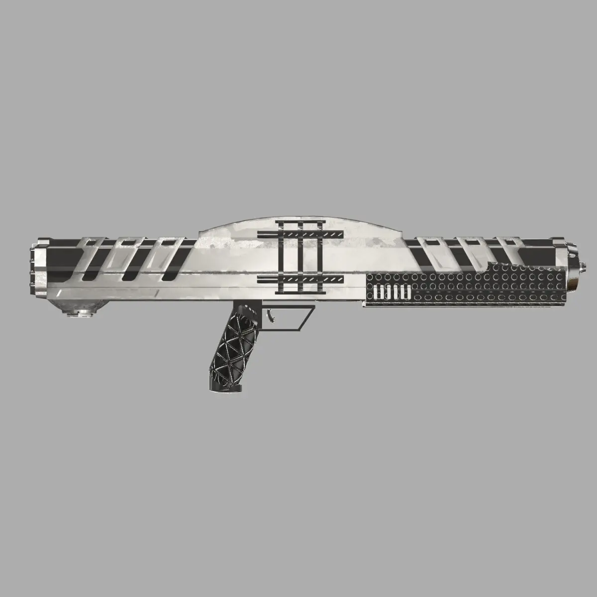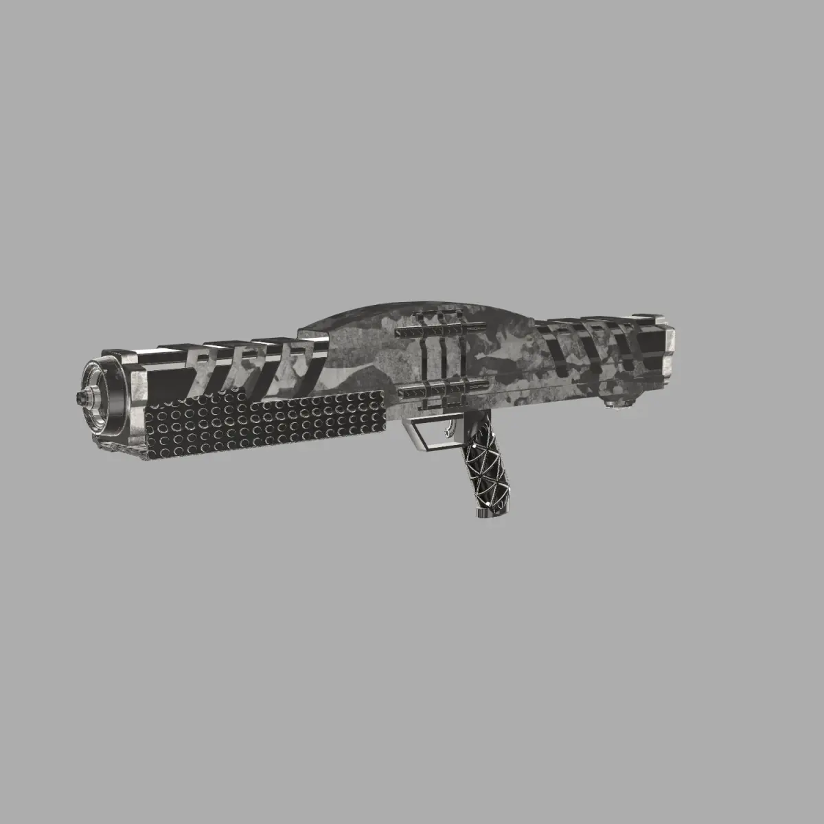 This is a fantasy/sci-fi shotgun model, perfect for your humans vs. aliens project, games, or a simple demo. This model is highly detailed and has a high polygon count so rendering may be slow. 2K Textures and materials are included in the .mtl file. The model is deigned to be rigged (such as the Fore End/Reloading slide), but you may need to move some pieces around; all pieces are editable. Further customization of the textures is advised to get the look that is displayed in the photos. OBJ MTL (materials) Rigged Fore End is titled under the name 'beam_02' Rigged Trigger objects are titled under the names 'Bent_'