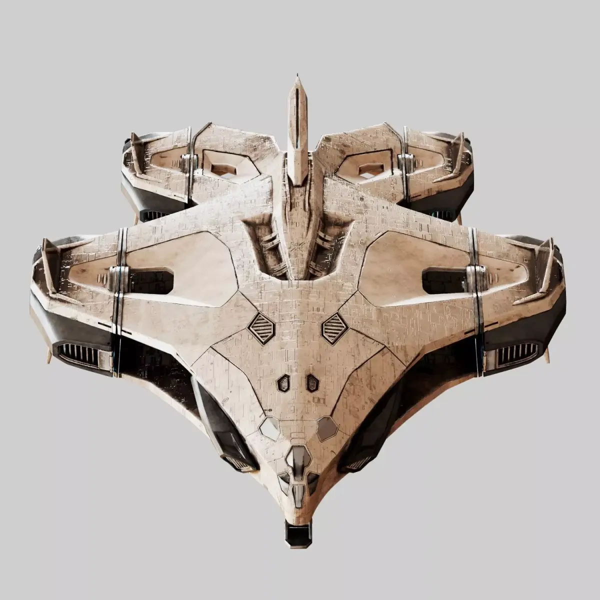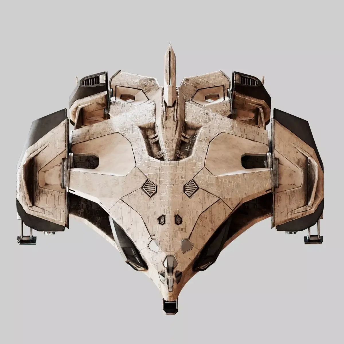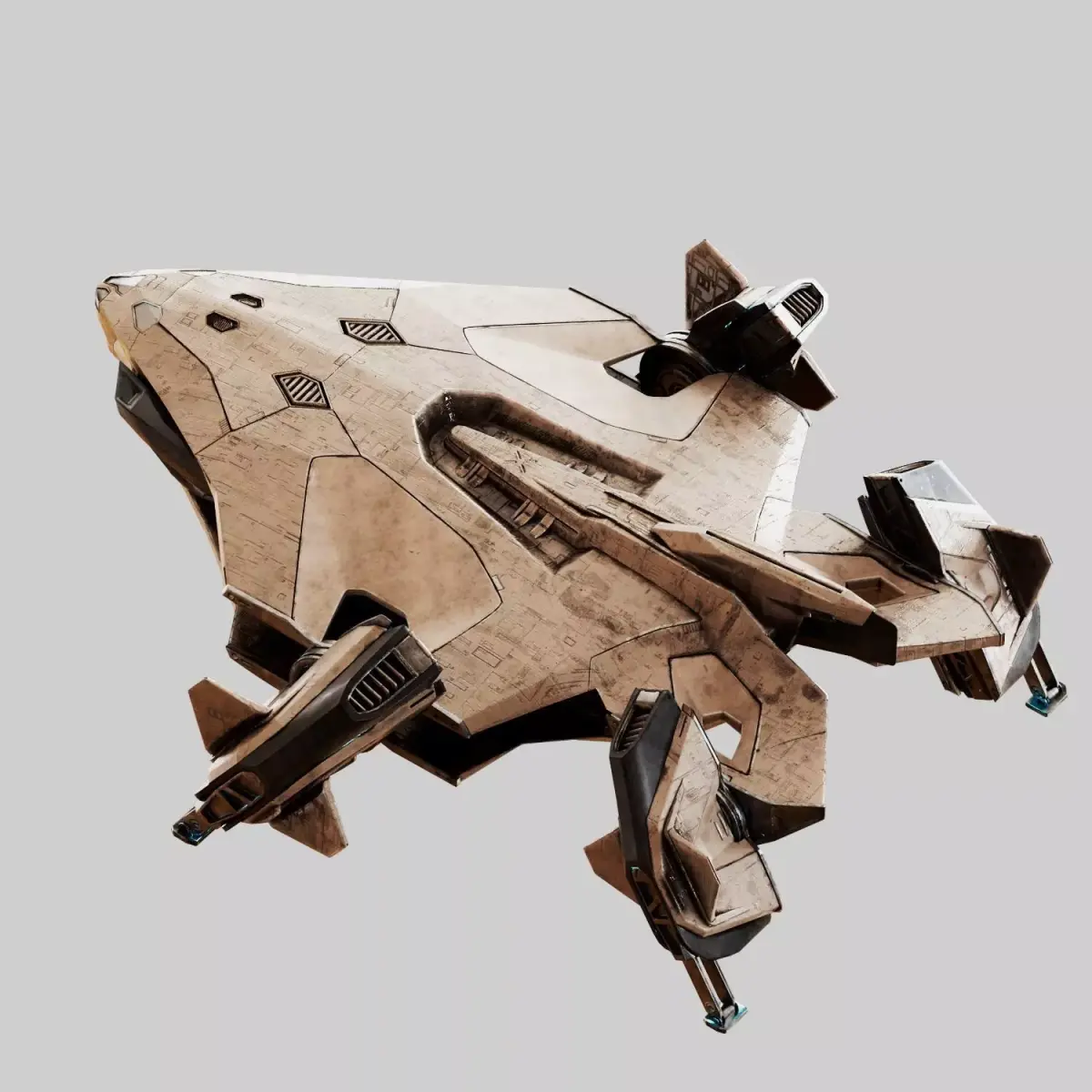 - 3D model of a sci-fi shuttle ship with movable flaps and landing gears ( not rigged)