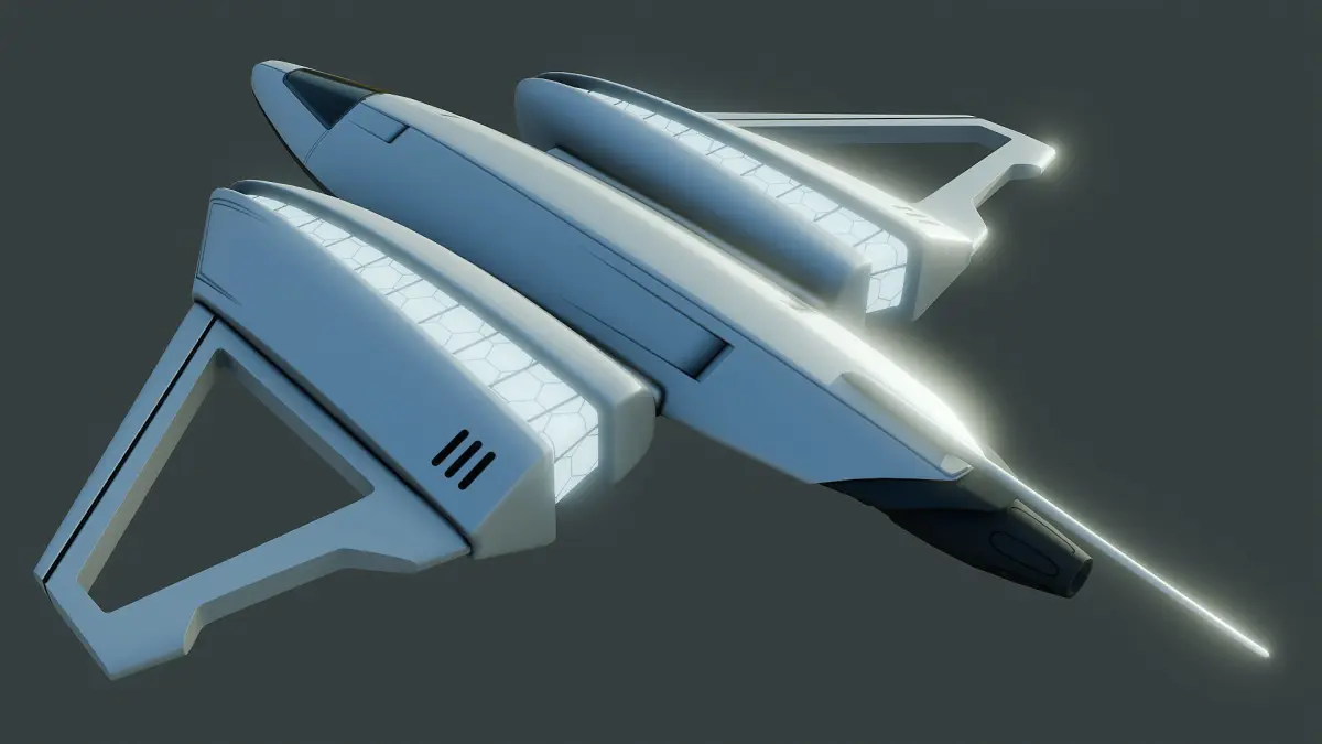 Futuristic Sci-Fi Spaceship Model: A sleek, aerodynamic design with glowing hexagonal-patterned panels and angular wings, perfect for use in science fiction scenes, games, or animations. The clean lines and intricate details emphasize a modern aesthetic, ideal for space exploration or futuristic flight settings. Optimized for both close-up and wide-angle shots, this model is ready for rendering or integration into creative projects. Contact info@configurate.net if you have any issues with the model.