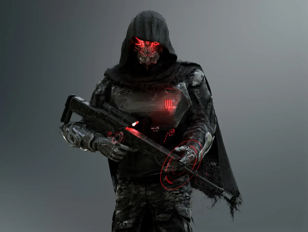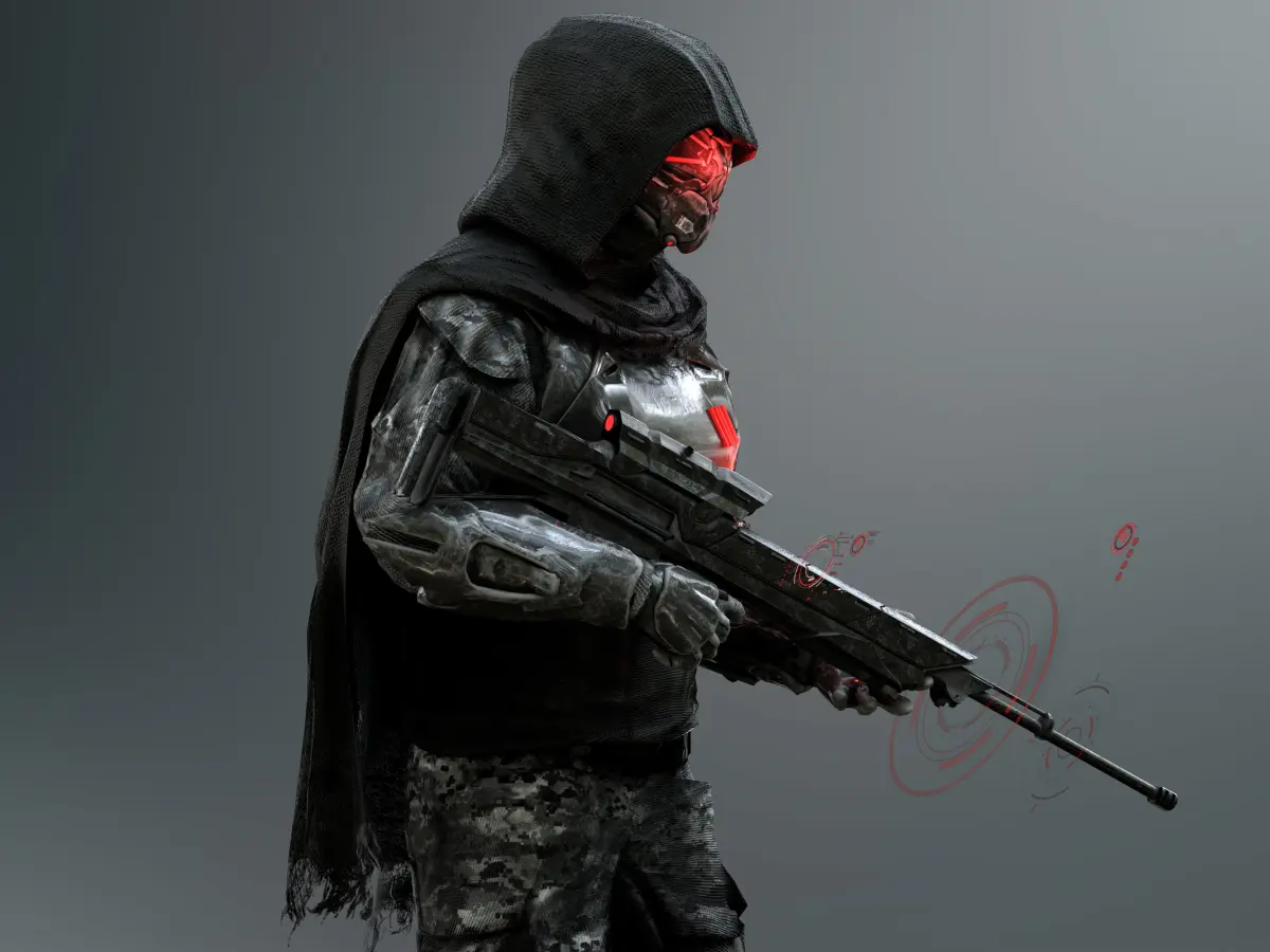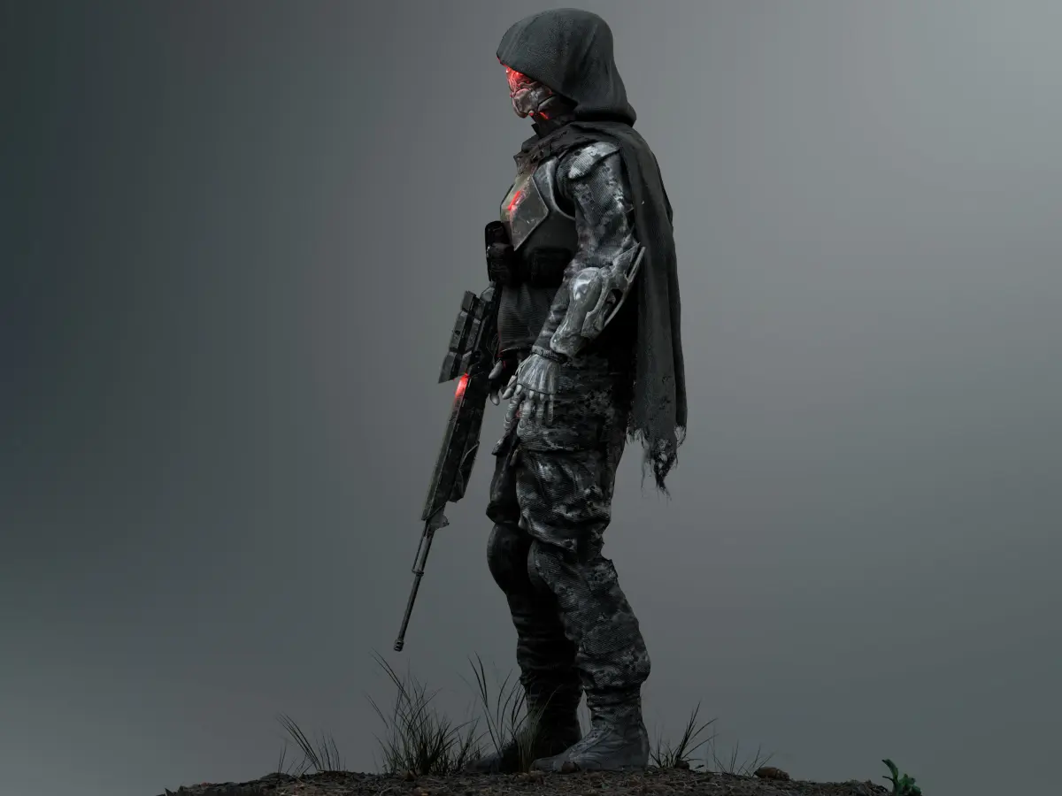 Detailed low poly 3D character Sci Fi Sniper Soldier