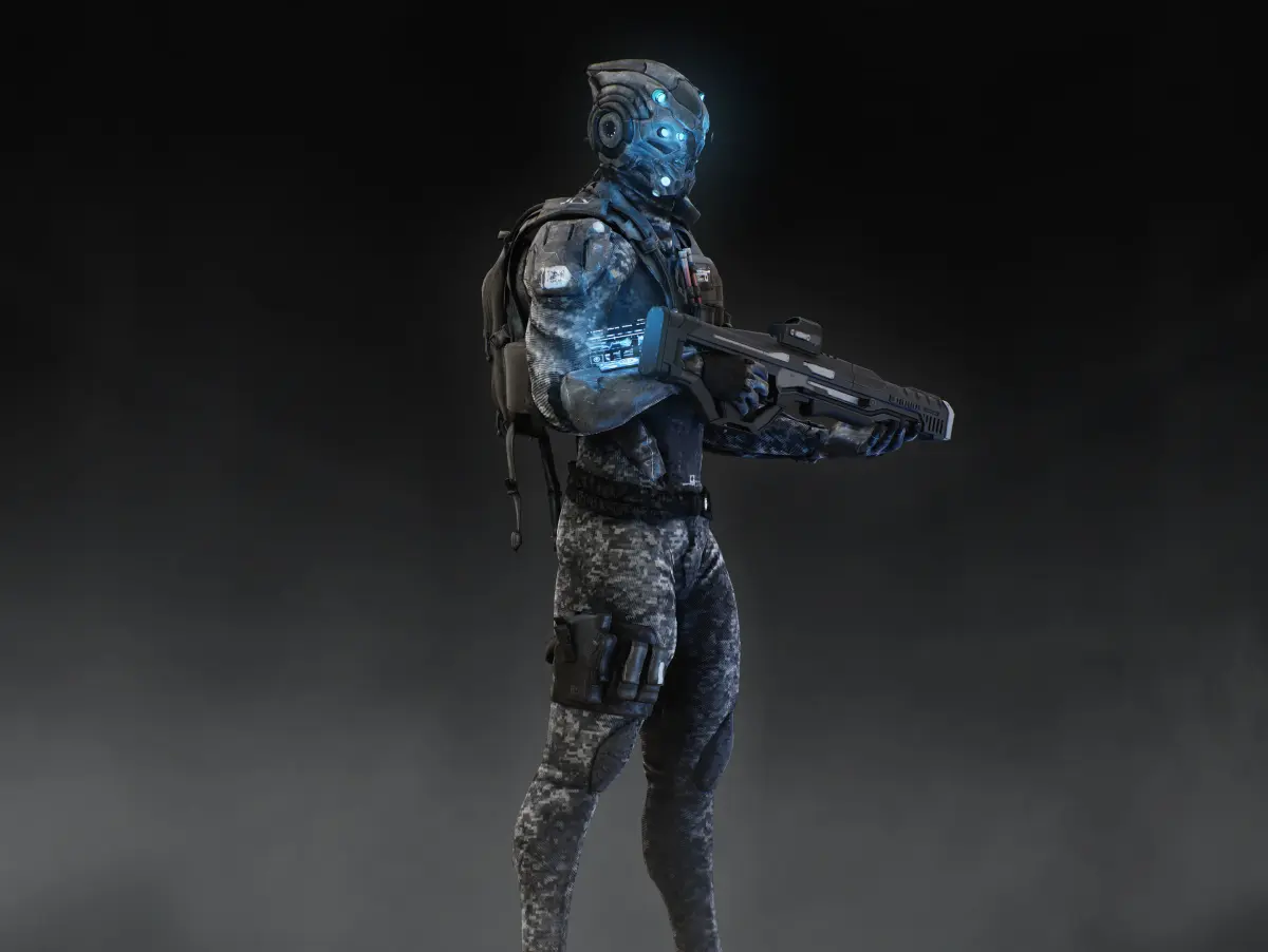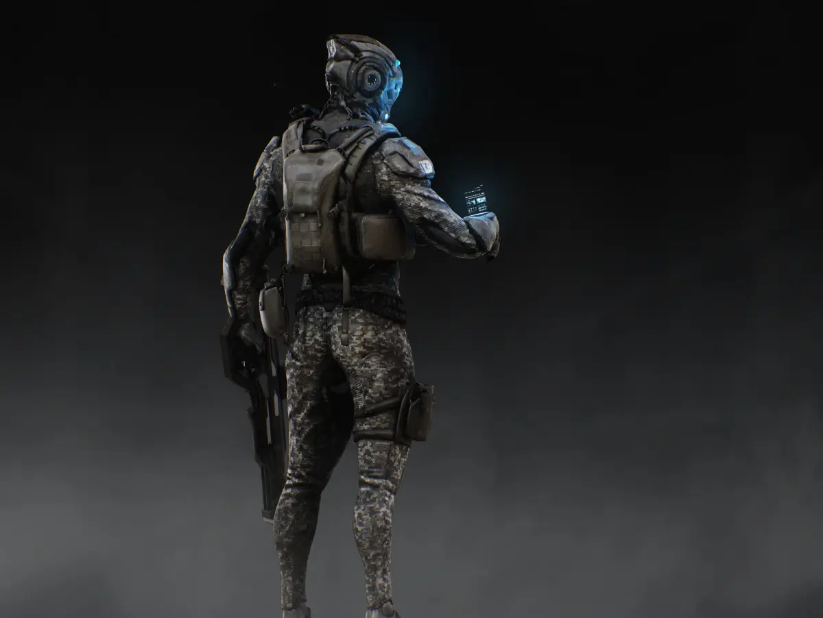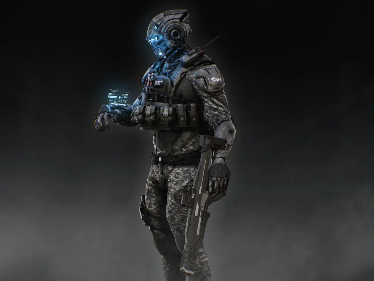 Detailed low poly 3D character Sci Fi Soldier