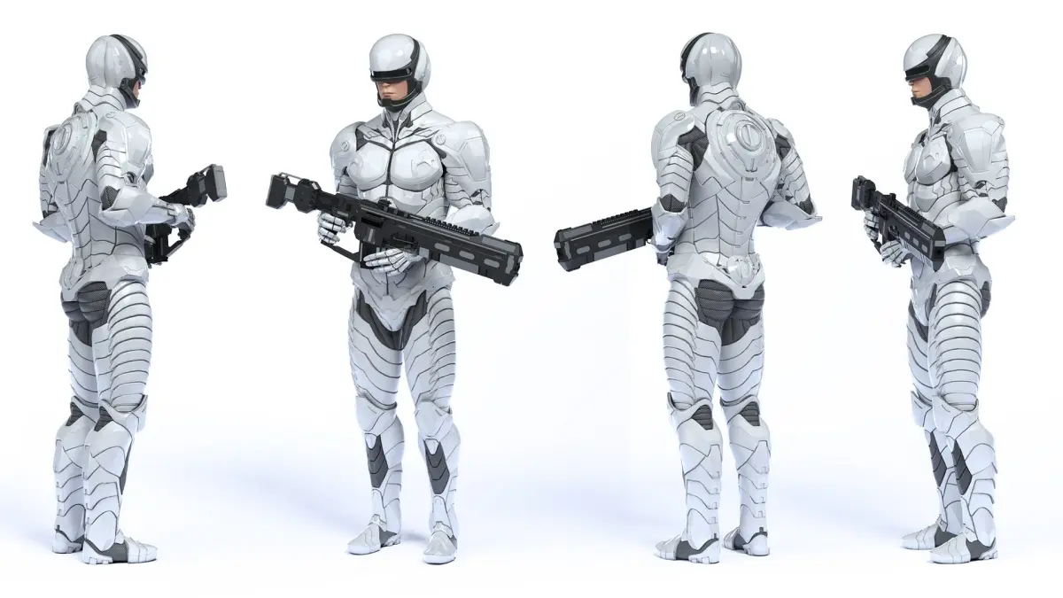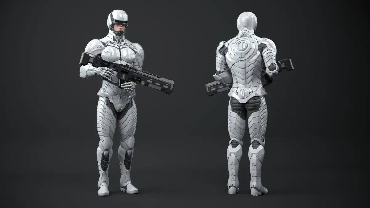 Sci Fi Soldier with Assault Rifle is a high quality, photo real 3d model that will enhance detail and realism to any of your rendering projects. The model has a fully textured, detailed design that allows for close-up renders, and was originally modeled in 3ds Max 2014 and rendered with V-Ray. Renders have no postprocessing!