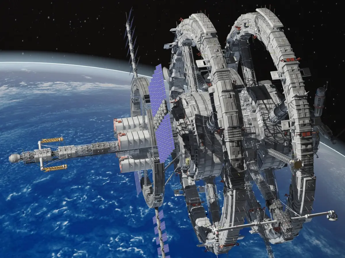 This is a generic sci-fi space station, unspecified type, made in Hollywood movies style.