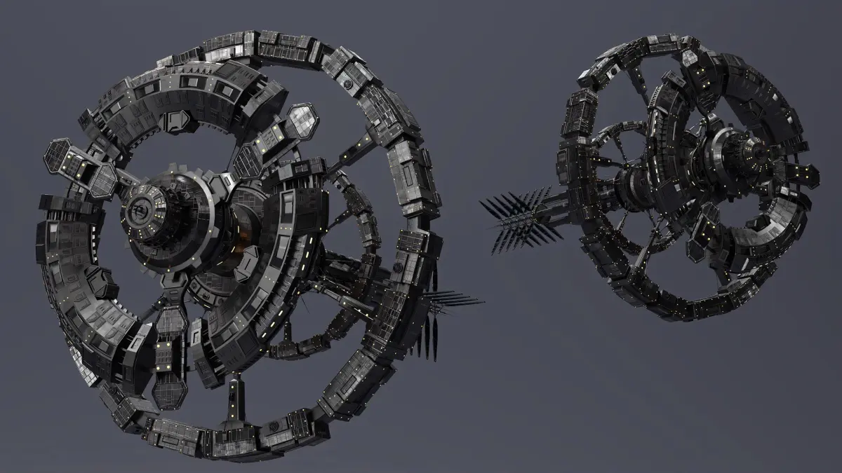 Sci-Fi Space Station Black is a 3d model of fictional structure located in outer space that serves as a hub for various activities such as research, exploration, military operations, or living quarters.