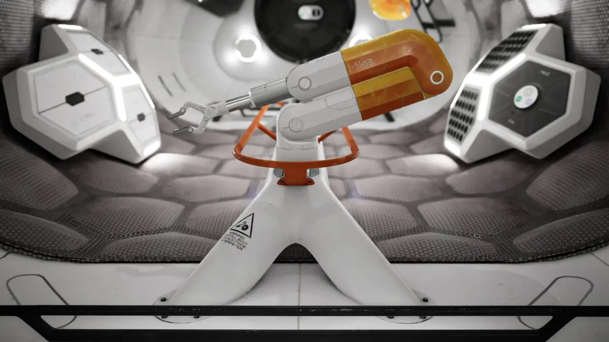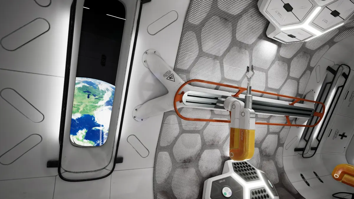 Low poly Interior of a sci-fi space station repair bay