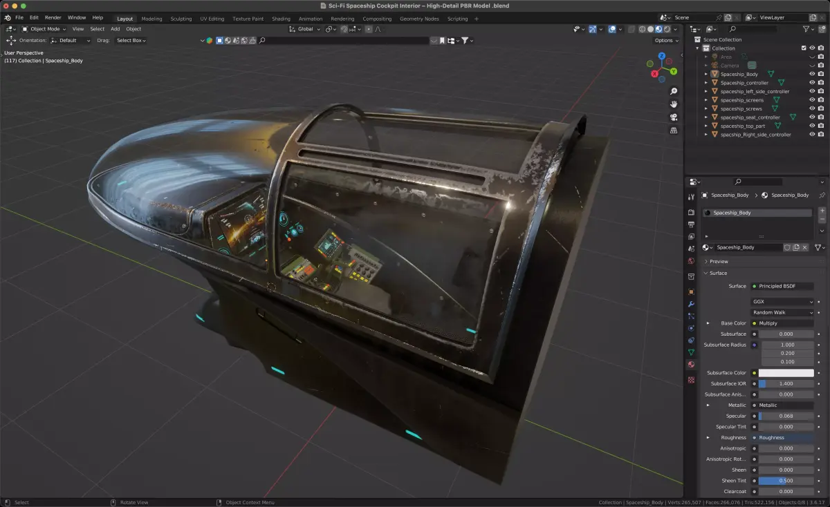 High-quality sci-fi spaceship cockpit interior, designed for games, cinematics, and real-time applications.This asset features detailed control panels, joysticks, buttons, levers, and HUD screens, built with a realistic hard sci-fi aesthetic. Optimized topology and PBR textures make it suitable for Unreal Engine, Unity, VR, and cinematic scenes.