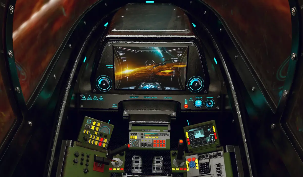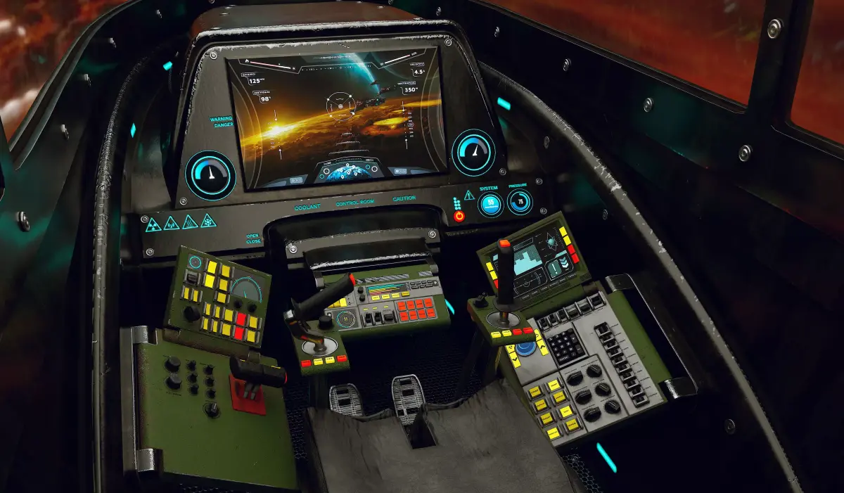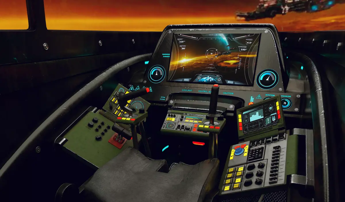 - High-detail sci-fi cockpit interior