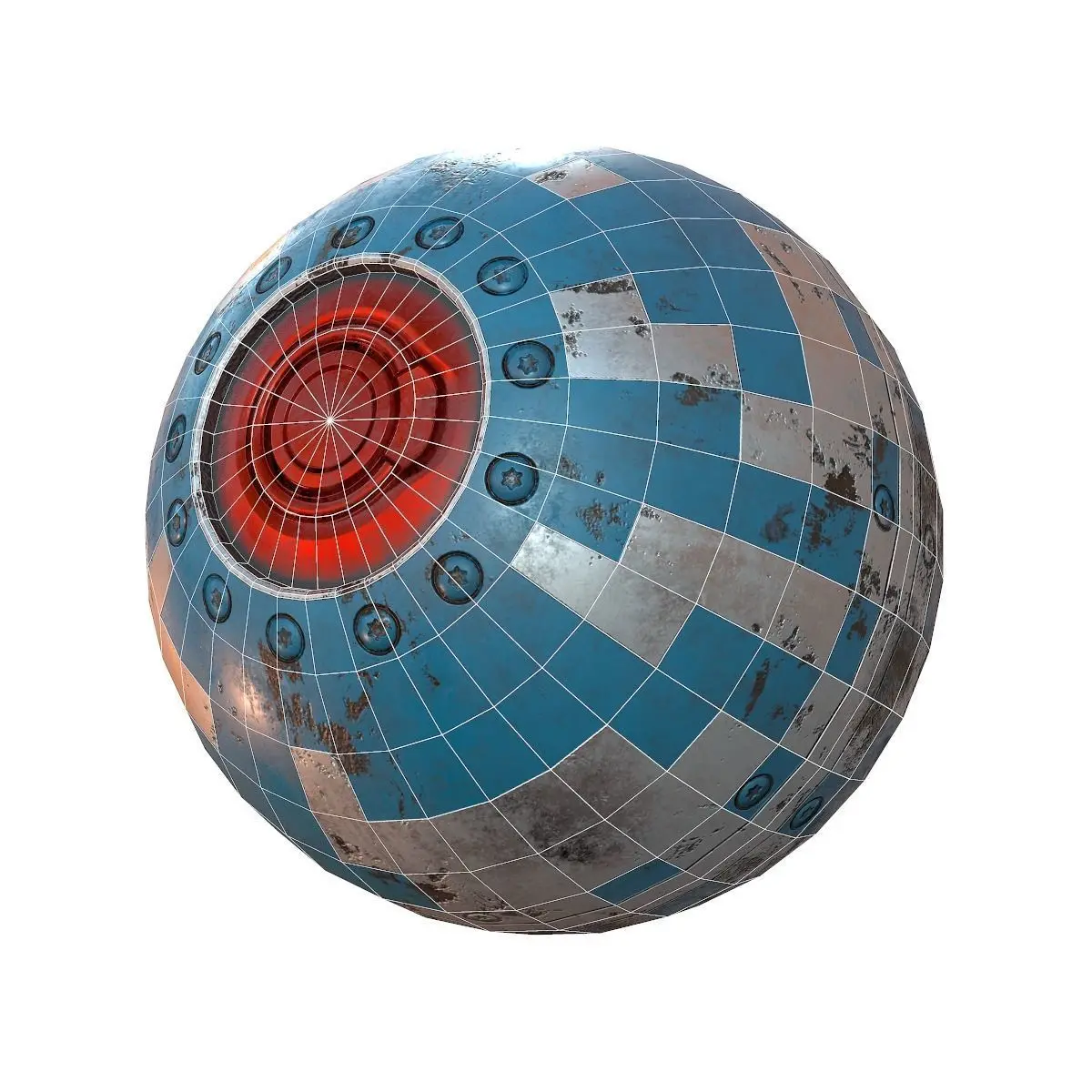 Sci-fi Sphere PBR game model. This could be a some kind of engine part, core, container, gyro or eye of a robot. 2K PBR metal roughness maps included.