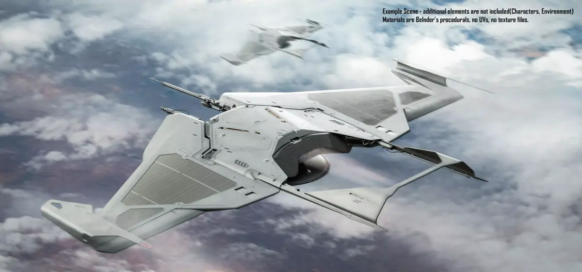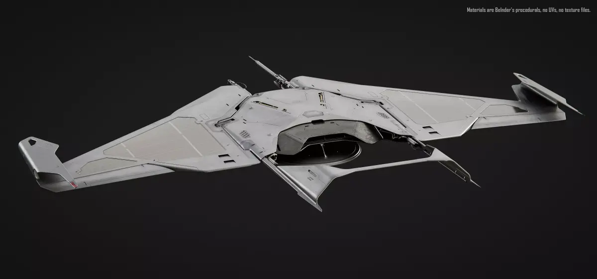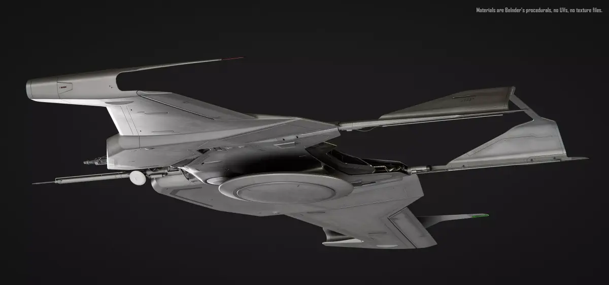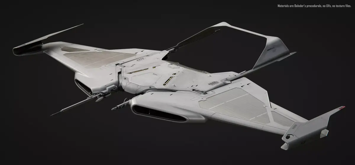 Final Scene in Blender 5.0 using Cycles Render.Warning!Model doesn't have any built in landing gear! Meant to be used only in the sky.Model doesn't have any UVs, all materials are procedual in Blender with additional decals, textures included in blender file(a few seamless roughness maps mostly).This model has Plasiticity native file.