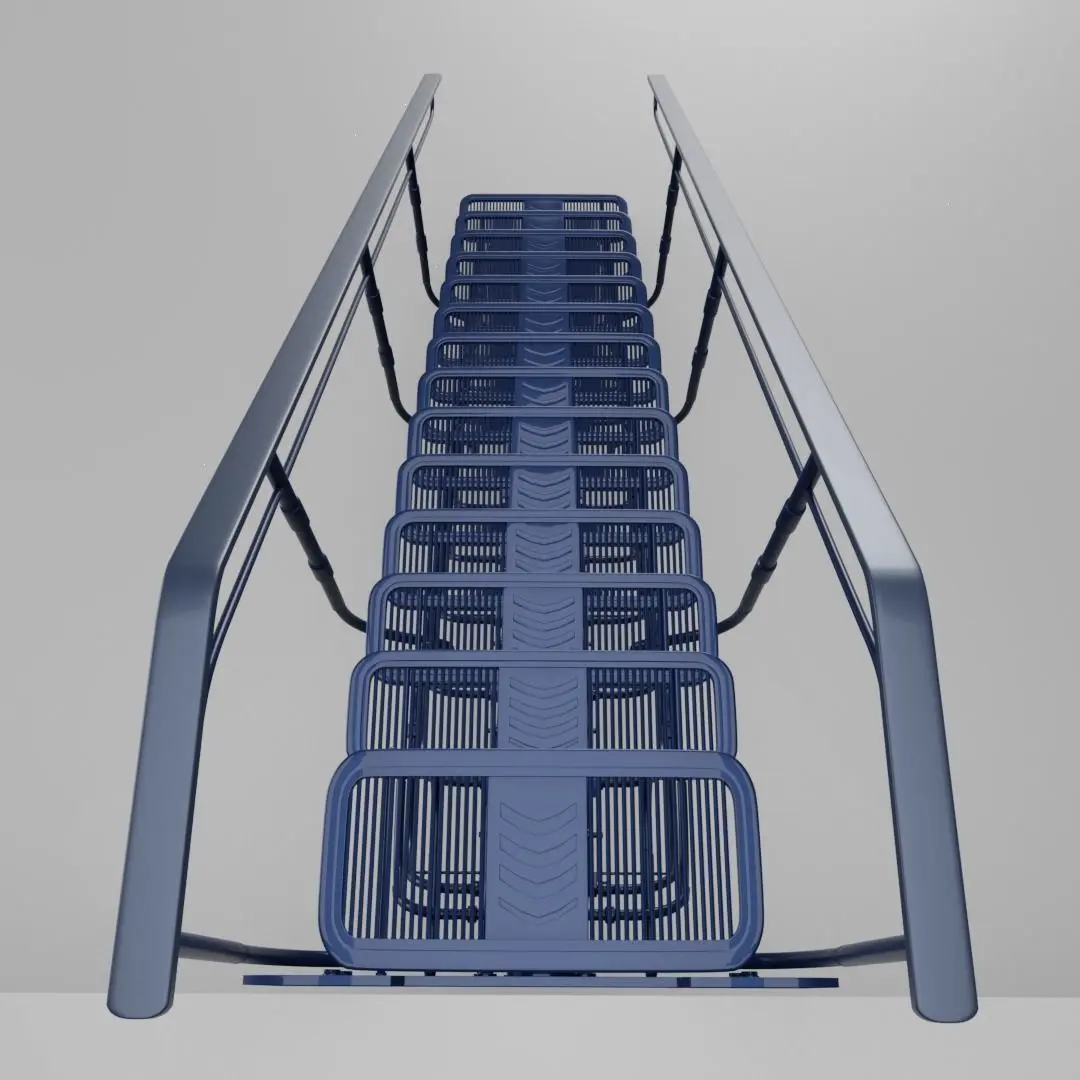 Science fiction inspired stairs perfect for space stations, starships, military installations etc.Based on real world measurements, 2M.88cm - 9'5" rise height.UVs have been unwrapped and UV maps are provided.Built with Blender, Tested in Unity, Daz Studio and open3mod.Special scaled obj. version ready to load into Daz Studio. High Poly.
