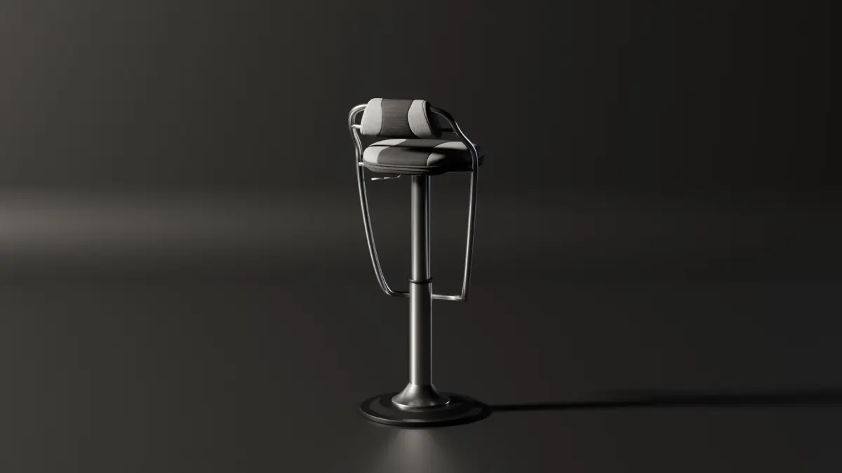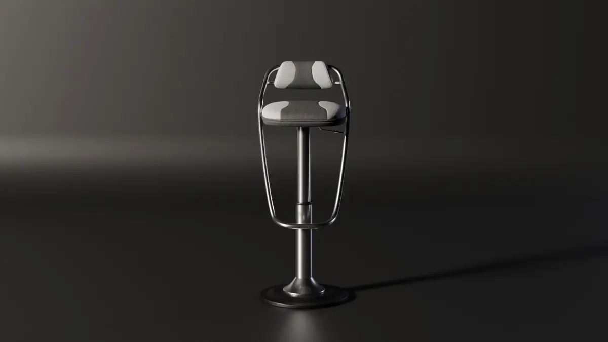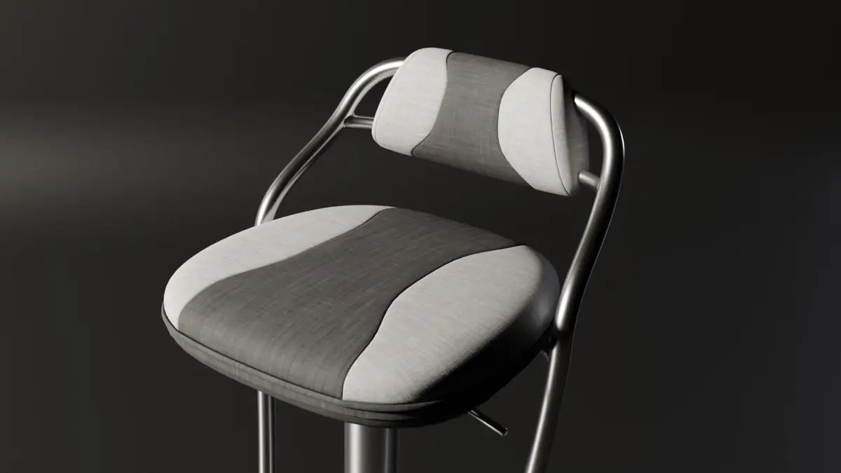 Original, generic science fiction themed bar/counter stool in dual colour upholstery.