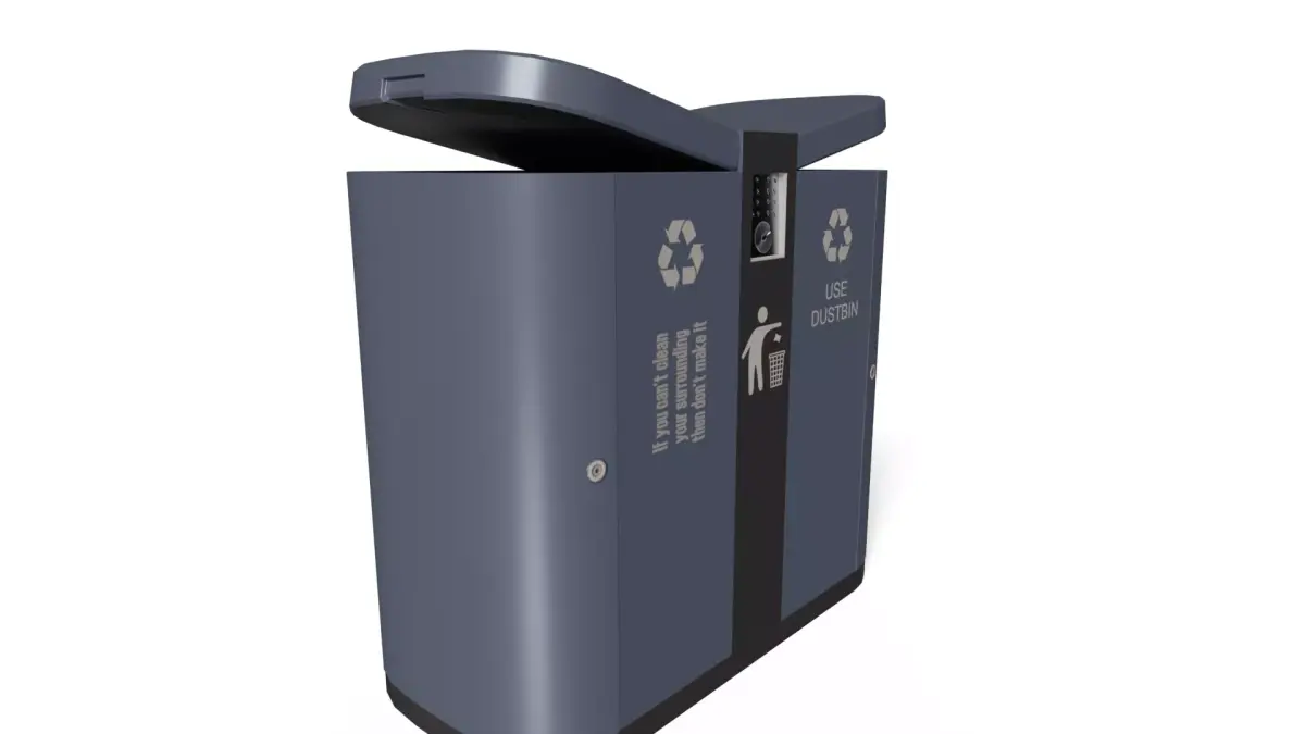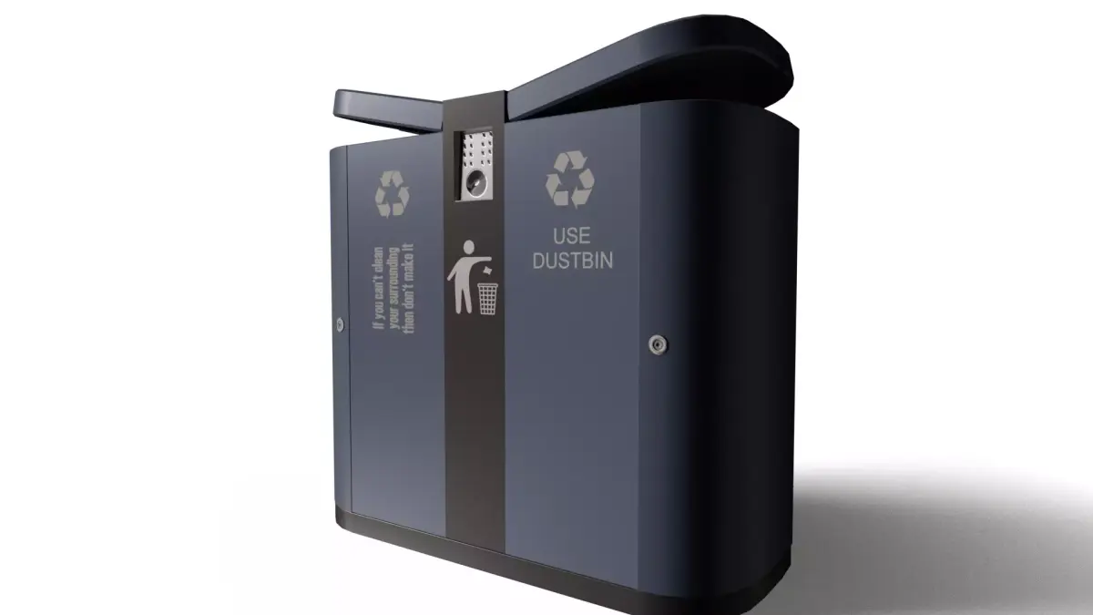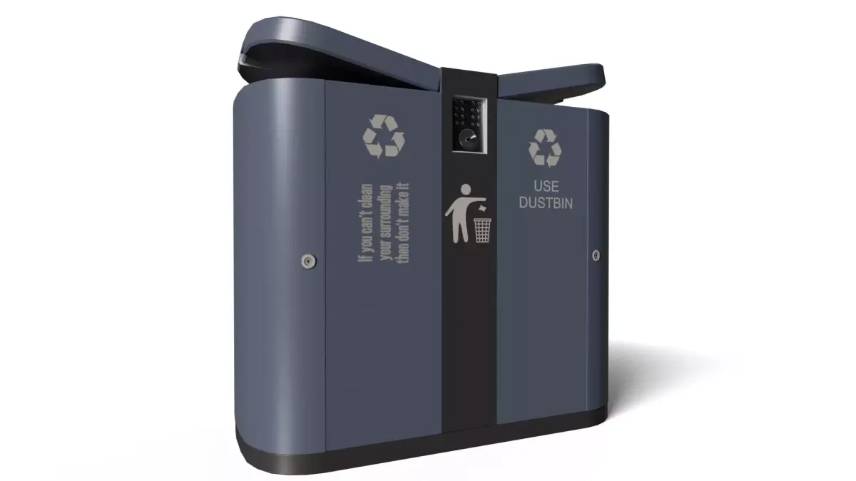 Featuring a dual-compartment design for waste and recycling, the model includes realistic decals and an integrated interface panel (keypad/sensor), adding a layer of functional detail to your scene.