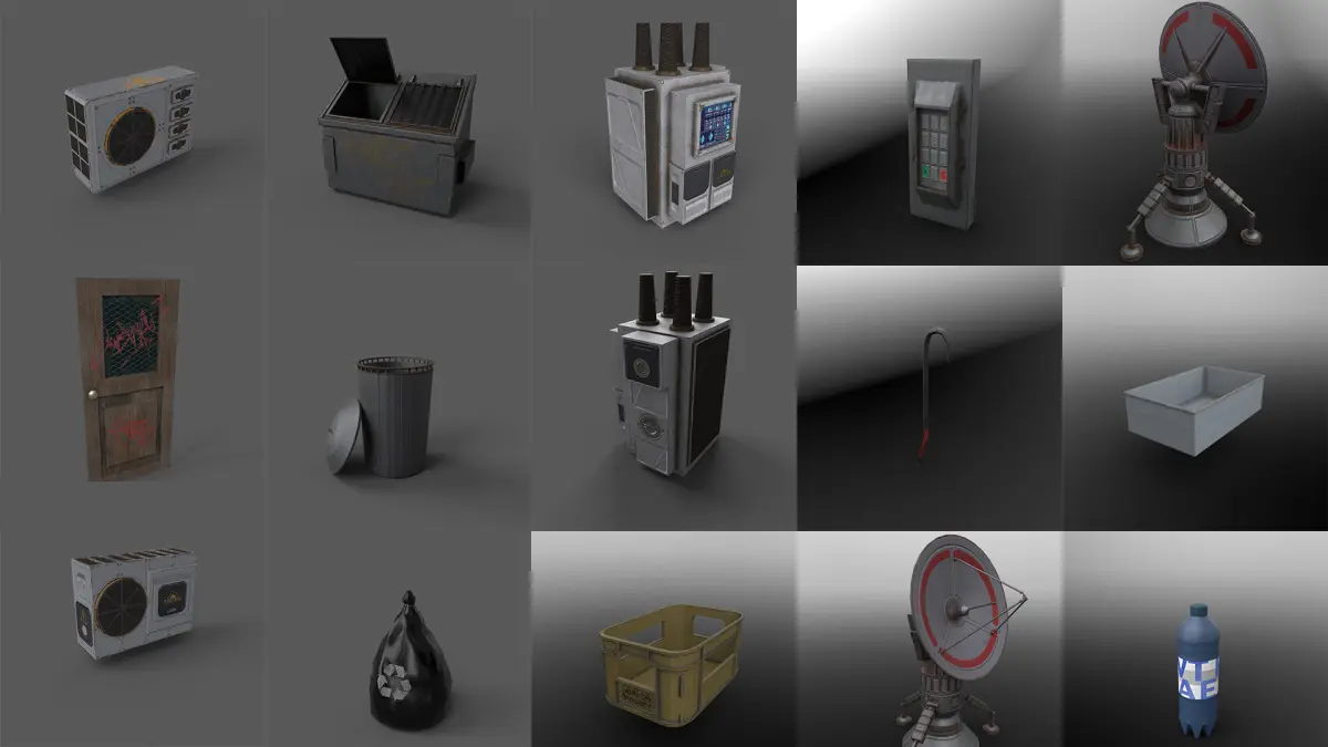 This is a Sci-fi street model in blade runner style. I created this model for render (for example Redshift) and for games (UE4). This product contain more then 40 game-ready and low poly models for street and env. Included files contain fbx files with Redshift textures or with UE4 textures. Also there is a file where every model have her own obj file(high and low poly), so you can import models that you want to any scene you want. And 2 additional files contain substance painter(OpenGL/DirectX) file for every model, so you will can just open this file, and export textures for any render program you want(Unity, Octane, Blender, Corona, Iray,.....).