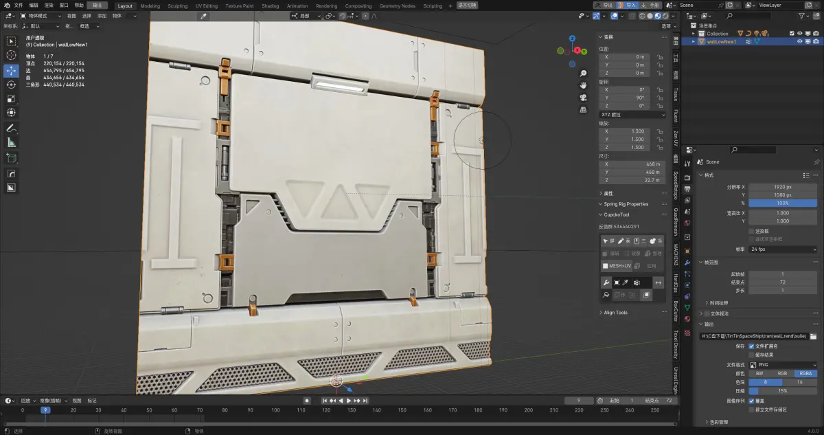 This is a sci-fi style wall deck high-poly component that can be used for continuous tiling. The model has been optimized poly count and Boolean cut, and is a polygonal closed solid high-poly. The output is in Stl and obj formats, and the output size of a single deck is 468*468*22.7mm. The model has been UV-unwrapped, and the UV has overlap and local stretching (the side and back of the wall are mainly for the cover, which is convenient for 3D printing, so the UV is not unfolded). The model has PBR materials, 4K textures, including Basecolor,Emissive, Roughness, Metallic, AO, Normalmap, Heightmap, ID, Curvature, and the texture is in PNG format (heightMap is in exr format). You can get more information from the preview pic.If any question please write to me.