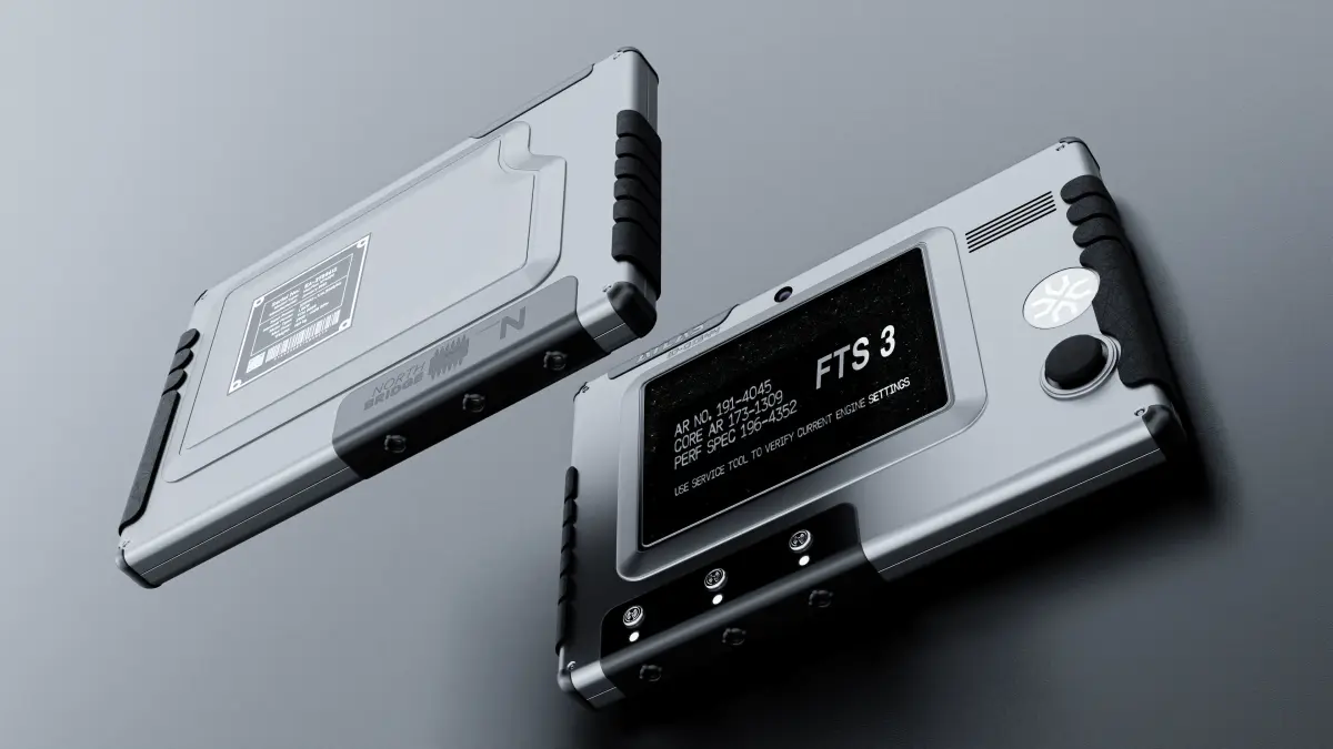 This sleek sci-fi tablet is made of silver plastic and has a smooth, reflective surface. It features a large touchscreen display, and a thin, body. The device is equipped with a variety of sensors and advanced circuitry, and it has a long battery life.