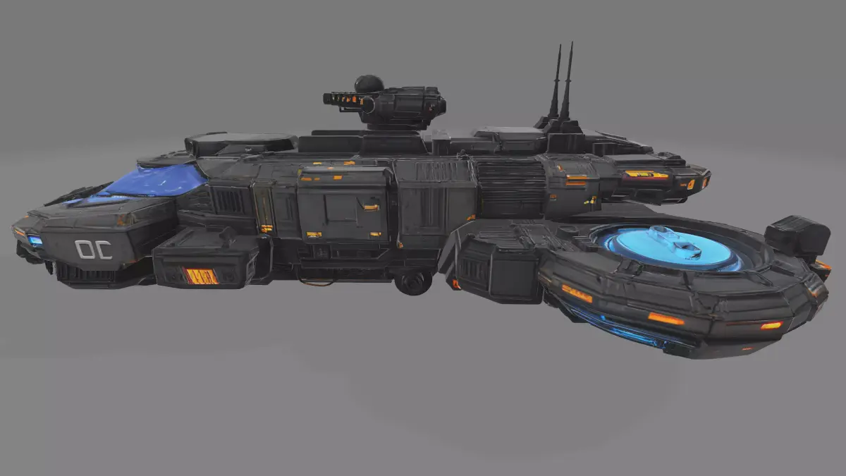 PBR Texturing: Fully equipped with high-quality Physically Based Rendering (PBR) textures for photorealistic lighting response. Perfect for harsh sci-fi environments, showing realistic metal wear, emissive thruster glows, and military-grade decals.