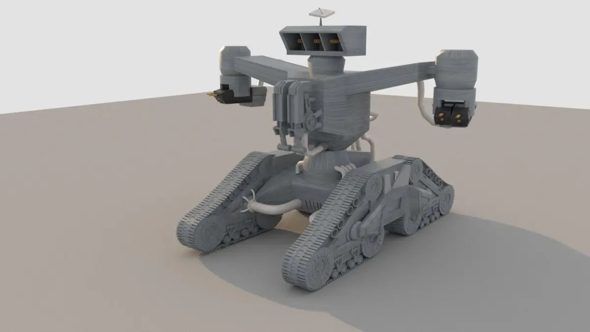 A 3D model of a sci-fi mechanized military vehicle Hunter Killer. Finished with Autodesk Maya 2019. Polygonal model that you can use for any purposes. Rendered with V-Ray 5.0. This model is game ready, can be used in war and any other scenes, also available for 3D Print.