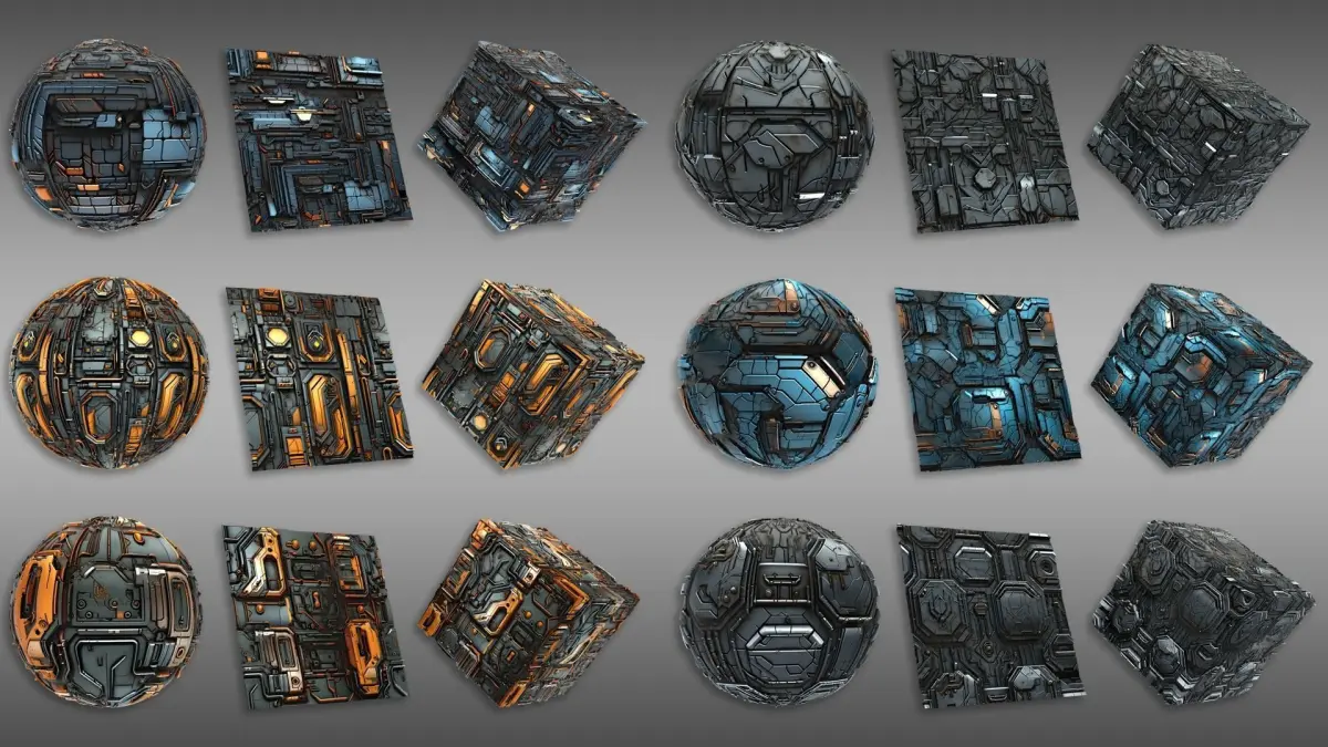 Twenty Unique Textures:Dive into a diverse selection of twenty sci-fi-inspired textures, each meticulously designed to capture the essence of futuristic aesthetics. From sleek metallic surfaces to intricate holographic patterns, this pack offers a versatile range of options to suit various design needs.