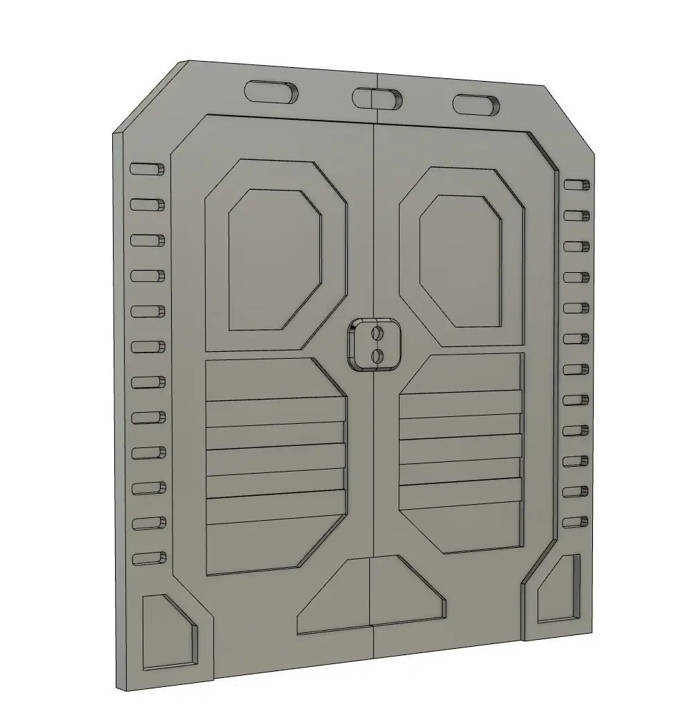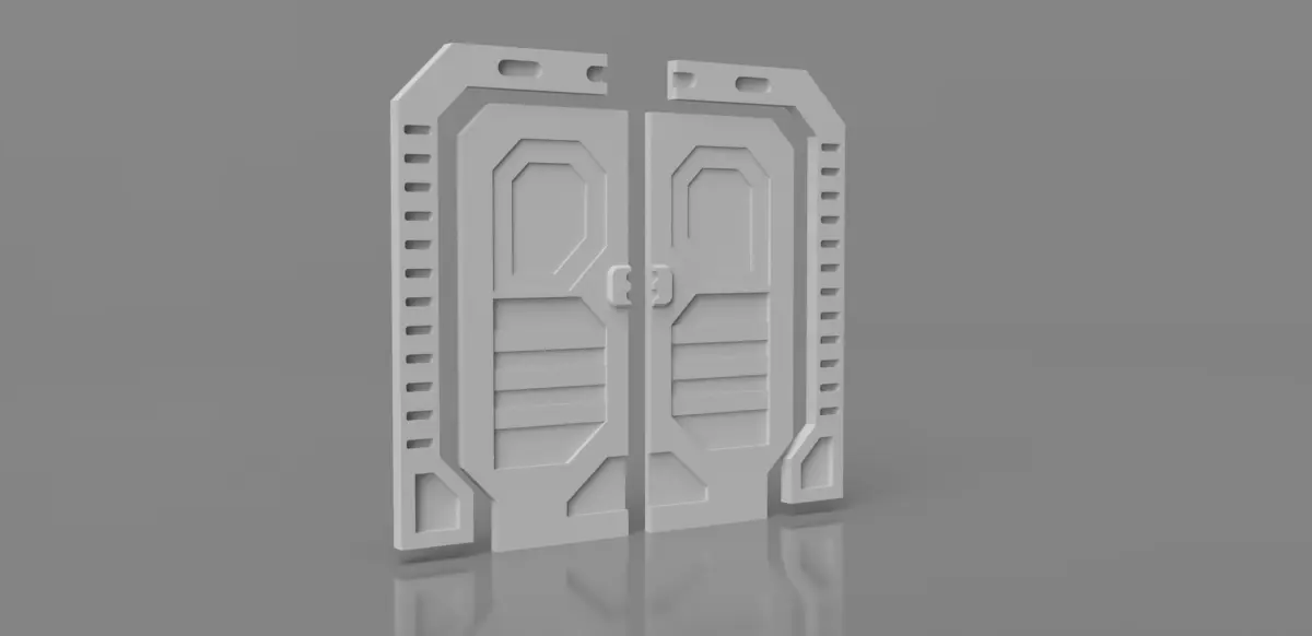 A Sci-Fi themed door and surround for 3D printing, modelled at 1/12 scale.