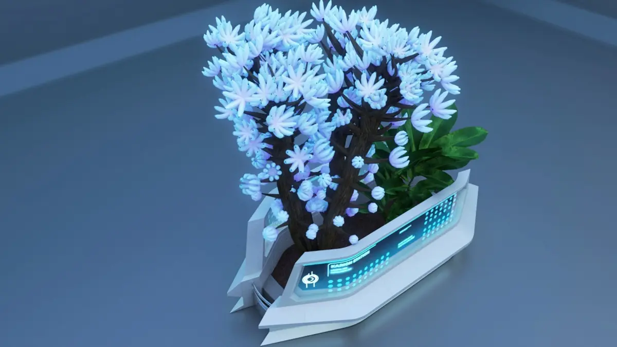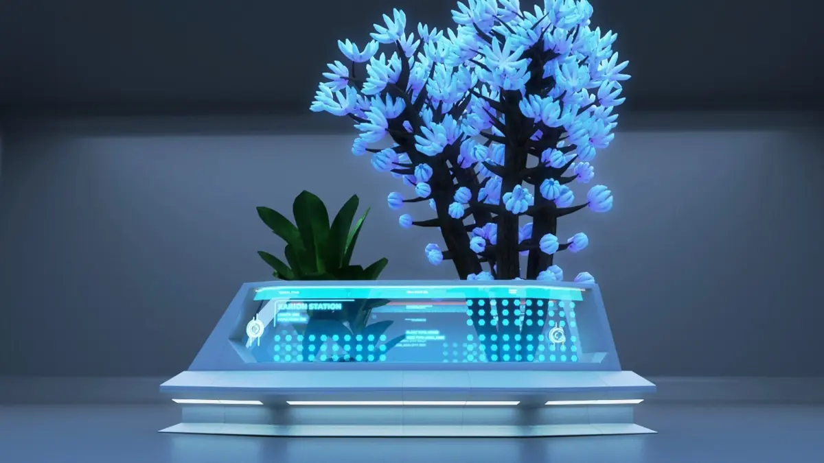 This is the SCI-FI tree and plant in futuristic design decoration.The window-glass is textureThe plant and tree is polygonal mesh with textures