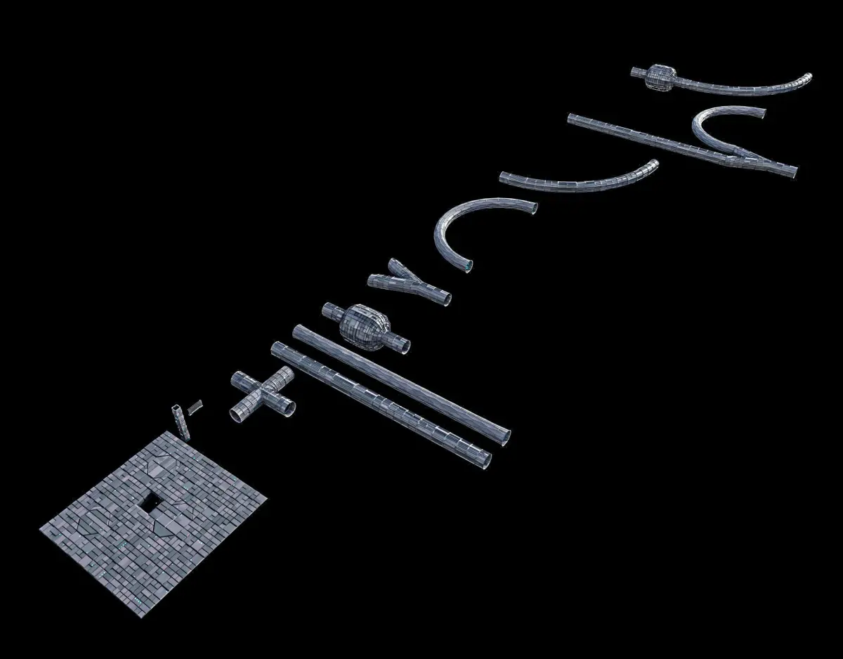 This pack has modular parts that match eachother so it can be used for creating a sci-fi tunnel as big and as complex as you want.