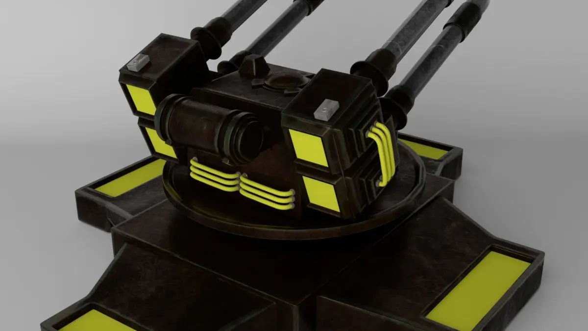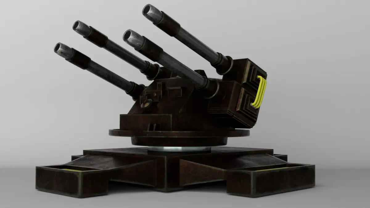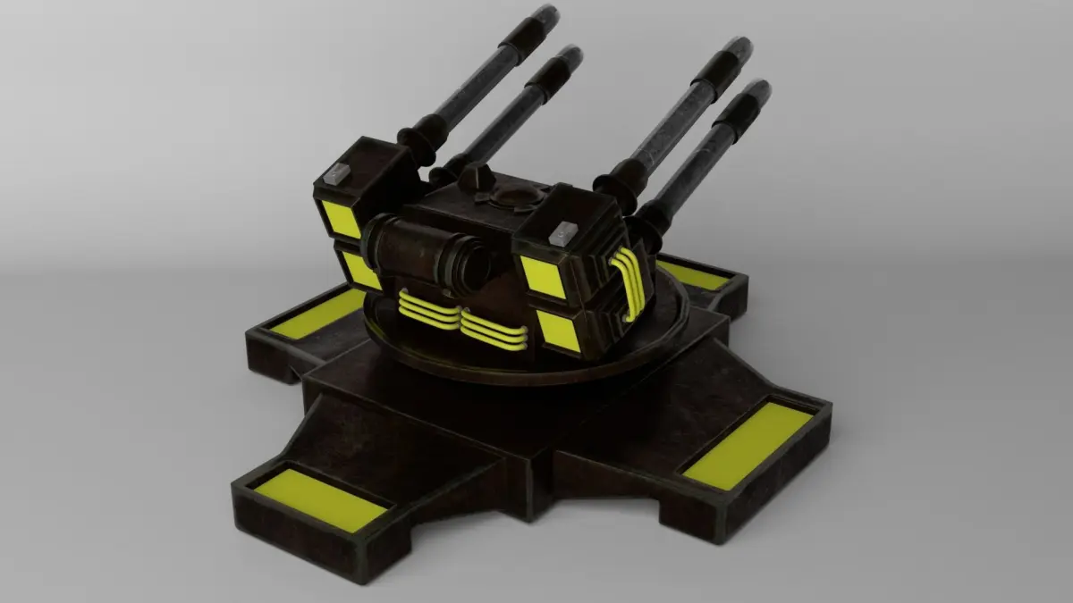 Military defensive system. Can be used as solo in scenes, or easily attached on building or some kind of vehicle.