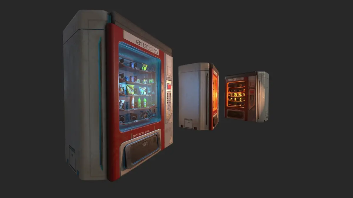 Sci-fi vending machine that could be used in different kind of environment such as cyberpunk\sci-fi etc. its included snacks props all created using PBR and game ready as well as render