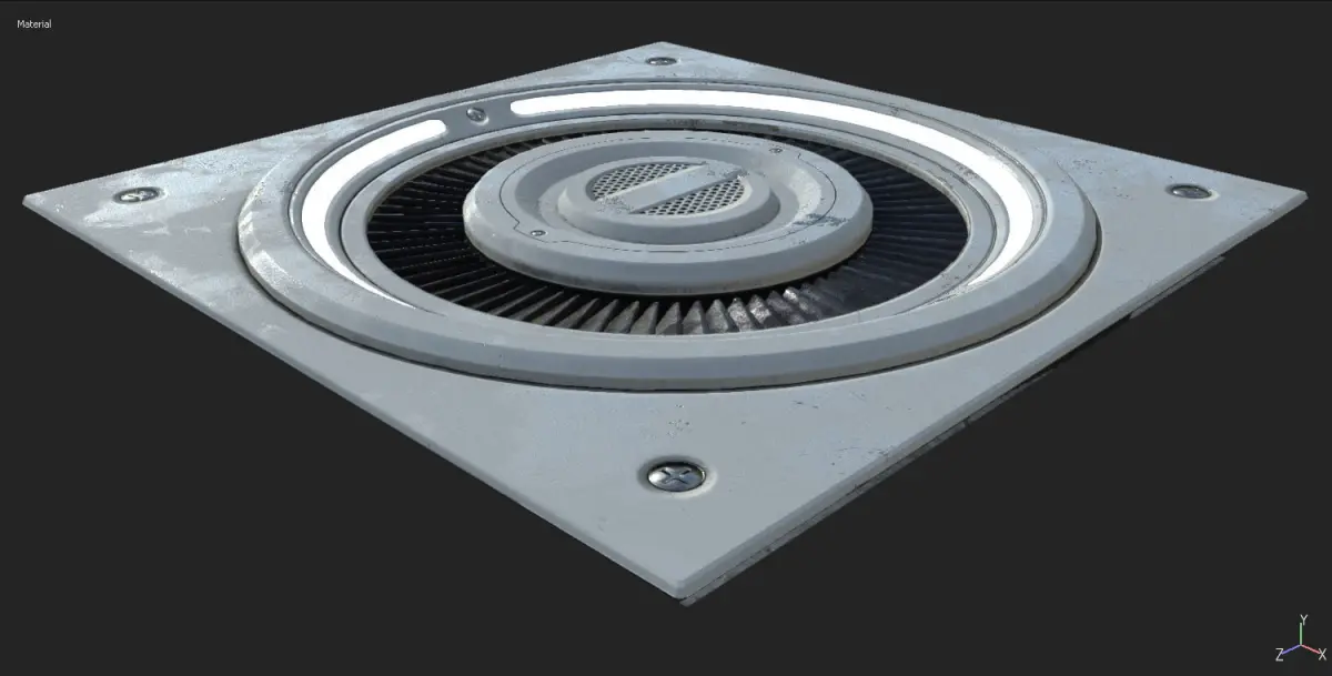 Sci Fi Fan/Airvent asset ready for decorate a futuristic enviroment, this asset was tested in Unreal Engine as you can see in the images, textures size is 4k but they can be easily reduced to 1k and the asset still looks fine, textures were made in Substance Painter, the pivot of this model is in the center for easier placement insinde the engine and also it was built in real scale.