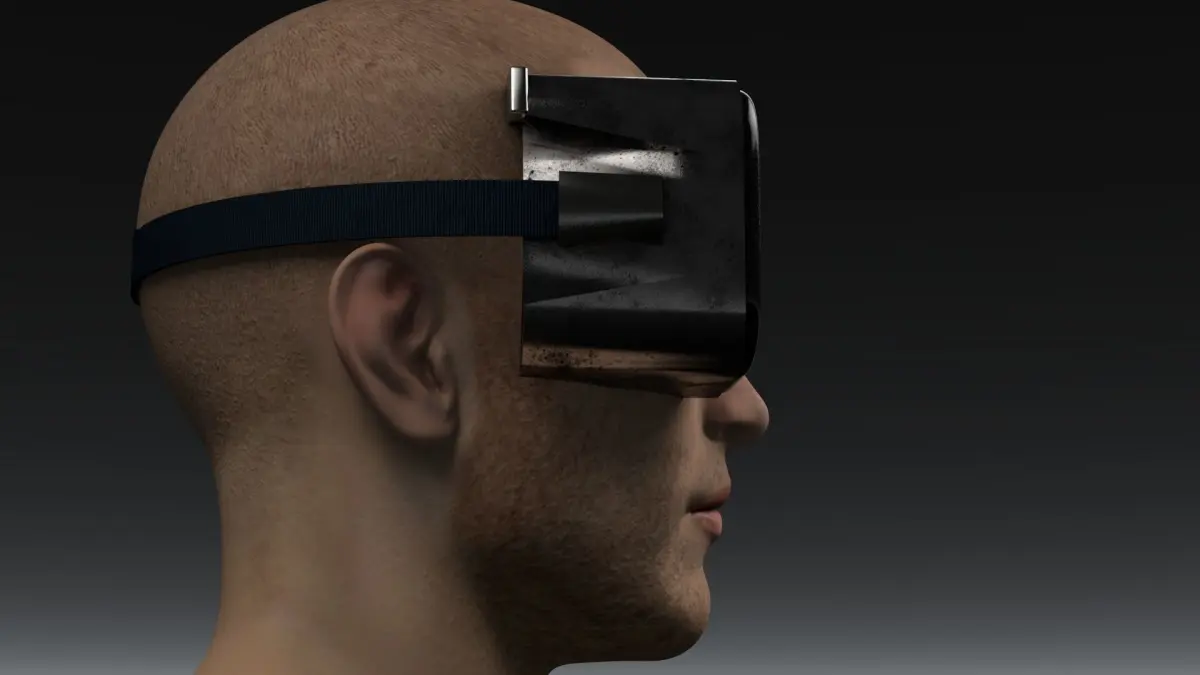 A futuristic VR headset with textures included within Cinema4D. Human head model not included.