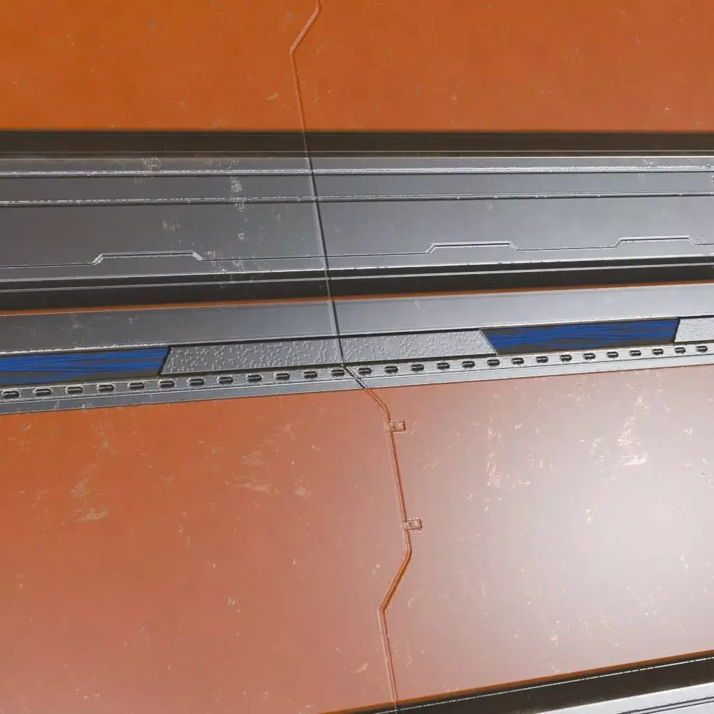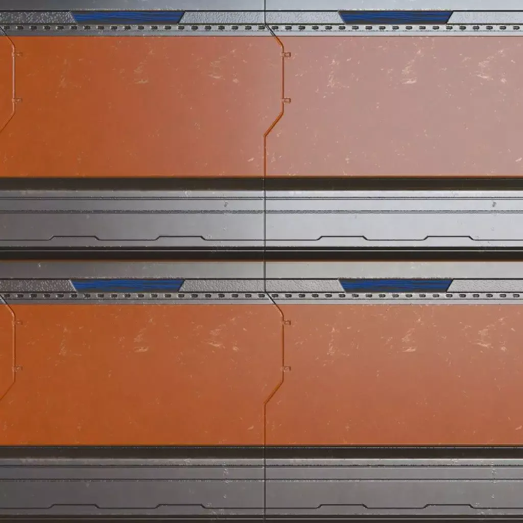 This material features a complex arrangement of modular panels, recessed light channels, and technical greebles characteristic of deep-space vessels and futuristic colonies. The design balances sleek, flat surfaces with intricate mechanical detailing, making it an ideal choice for space station corridors, high-tech laboratory interiors, cyberpunk alleyways, or starship engine rooms. The Normal and Height maps deliver significant geometric depth, making the wall appear physically layered without the need for high-poly modeling. The Metallic and Roughness maps work in tandem to distinguish between the matte composite materials and the polished alloy trims, providing a convincing, used-but-clean high-tech aesthetic. This material is provided in 2K resolution. If you require high-quality material in 4K, 8K, or 16K, please contact us. A Blender native file is provided along with a separate PBR textures folder that can be used in any 3D software, including 3ds Max, Cinema 4D, Maya, game engines like Unreal Engine and Unity, and texture painting software such as Substance Painter.