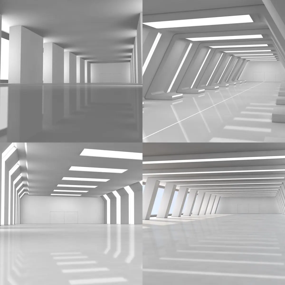 4 different 3d models of Sci Fi Warehouse