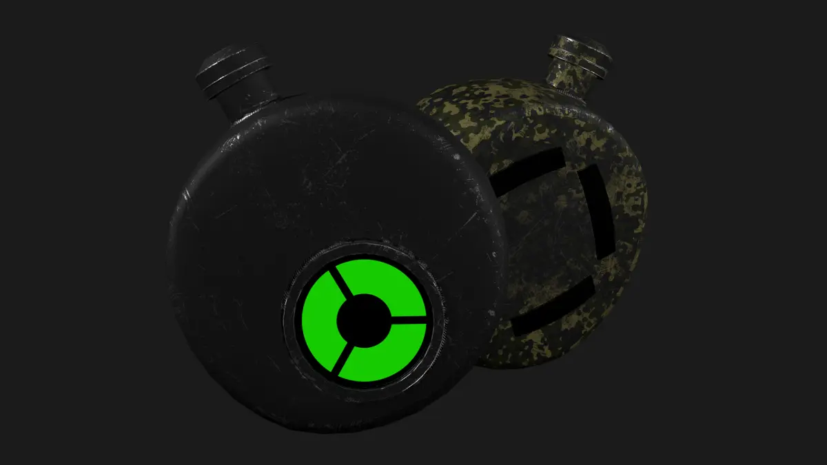 Discover a battle-worn water bottle. The model is made for gamedev, polygon count is preserved as low as possible with containing as much detail as user may see.Texture set provides 3 different emission maps for different levels of battery charge, which is displayed onthe front face of the bottle.Polygon count: 1384Vertices count: 1416If needed, you can contact me and I'll remodel or retexture it for your specific purposes.Formats: FBX, Obj, Blend, StlTexture resolution: 4096x4096. Texture format: PNG.