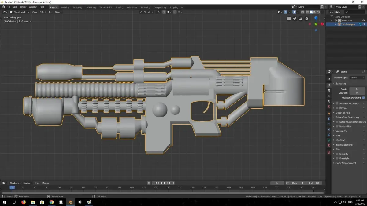 A sci-fi weapon modelled in blender 3d software.Not modelled in the version 2.79.