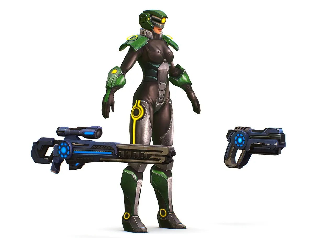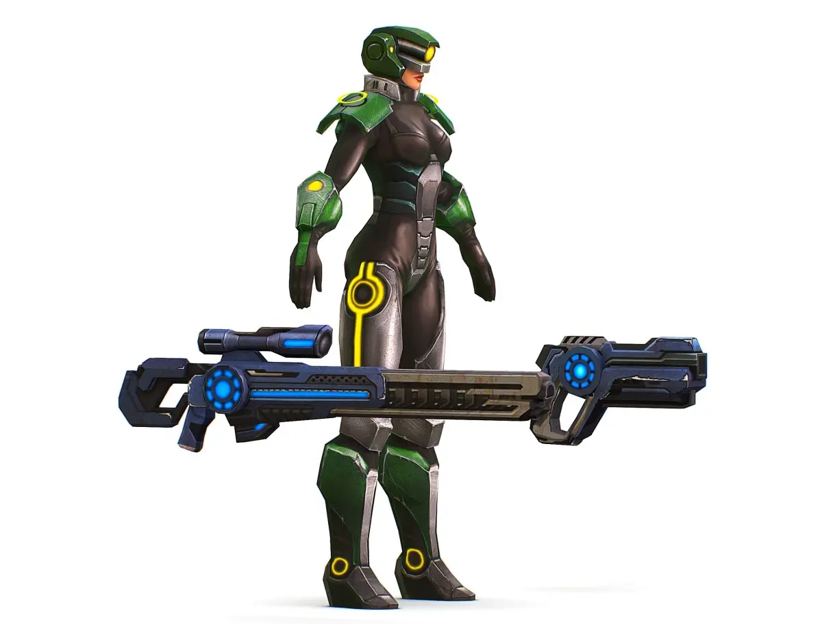 Cartoon Sci-Fi Cyborg Drone Sniper Soldier