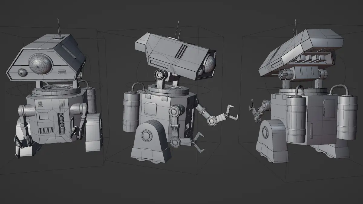 A Sci-Fi Worker Robot character, created with Blender and rendered in Eevee. This model will also look great in the Cycles render engine.